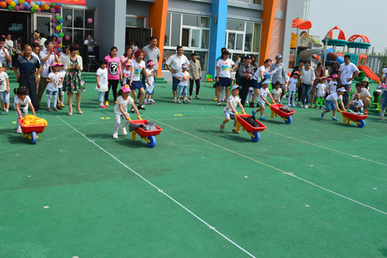 (特約記者 鞠芳)“寶貝,加油,向前沖!”6月1日上午,虹橋鎮(zhèn)中心幼兒園操場(chǎng)上人聲鼎沸,家長(zhǎng)和孩子們笑語(yǔ)不斷,一場(chǎng)充滿童趣的親子運(yùn)動(dòng)會(huì)讓節(jié)日的校園更加熱鬧。 音樂(lè)響起,孩子們組成5個(gè)方隊(duì)閃亮登場(chǎng),輪番表演了歡快活潑的舞蹈節(jié)目。天真無(wú)邪的笑臉,稚氣未脫的舞步,吸引得圍觀家長(zhǎng)目不轉(zhuǎn)睛,紛紛拿出手機(jī)攝影拍照,為自己的寶寶們留下珍貴的紀(jì)念。 活動(dòng)進(jìn)入比賽環(huán)節(jié),操場(chǎng)上氣氛更加熱烈。“比誰(shuí)爬得快”、“穿越障礙物”、“搶尾巴”、“我?guī)桶謰尨┮路?rdquo;等游戲無(wú)不考驗(yàn)著家長(zhǎng)和孩子的默契程度,側(cè)重于培養(yǎng)孩子們的頑強(qiáng)意志和爭(zhēng)先意識(shí),也彰顯了虹橋鎮(zhèn)中心幼兒園“課程游戲化”的教育理念和成果,贏得了社會(huì)各界的認(rèn)可和好評(píng)。 成立于2014年8月的虹橋鎮(zhèn)中心幼兒園環(huán)境優(yōu)美,設(shè)施一流,配有適合不同年齡幼兒玩耍的大型玩具和種類(lèi)豐富的體育器材,戶(hù)外建有玩沙池、戲水池、種植角、飼養(yǎng)角等幼兒游戲區(qū)域,設(shè)有創(chuàng)意美工館、陶藝坊、圖書(shū)室、科學(xué)發(fā)現(xiàn)室、游戲室等專(zhuān)用活動(dòng)室,堅(jiān)持通過(guò)各種游戲讓幼兒獲得能力的發(fā)展,近期將接受江蘇省優(yōu)質(zhì)幼兒園評(píng)估驗(yàn)收。 |