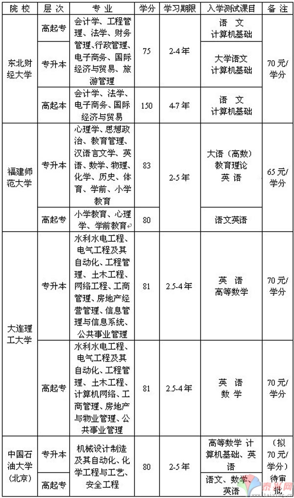 (3)注冊與收費:學生在注冊時按省教育廳、省物價廳、省財政廳規定的收費標準辦理繳費手續,學費57、5元/學分(?疲┖70元/學分(本科),考試費50元/門。