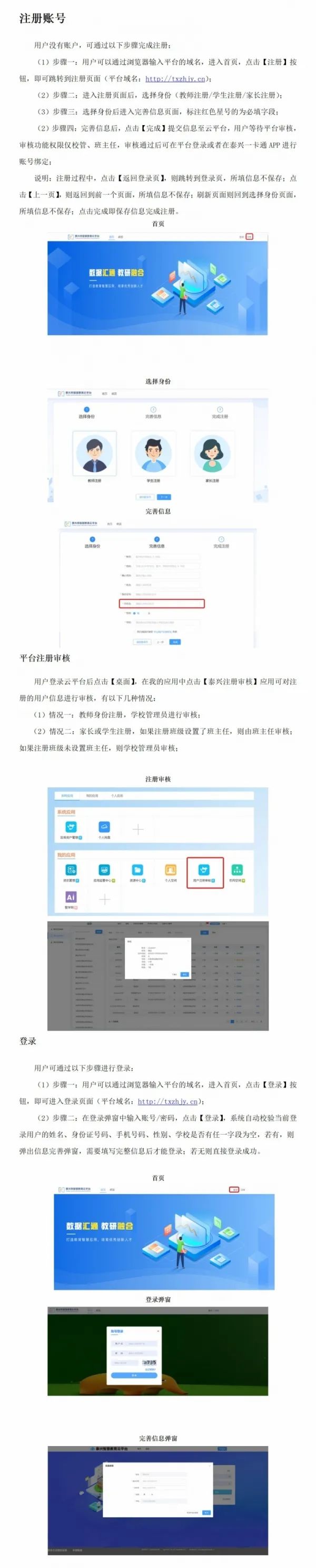 用戶登錄泰興一卡通APP,底部菜單點擊【生活服務(wù)】,在【校園教育】中點擊應(yīng)用,有以下三種情況: 情況一:用戶沒有泰興市智慧教育云平臺賬號,進入賬號綁定頁面,可根據(jù)友情提示,在電腦上搜索”泰興市智慧教育云平臺“完成注冊,具體步驟參考下圖: