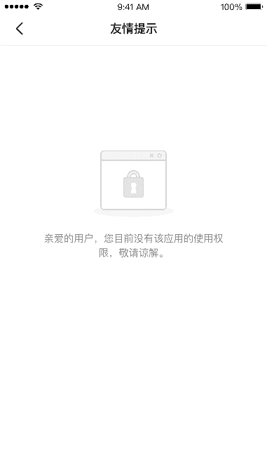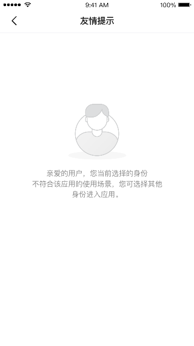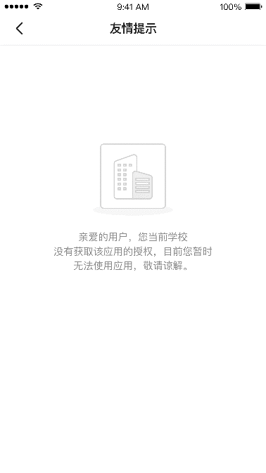 選擇身份 友情提示用戶登錄泰興一卡通APP,底部菜單點擊【生活服務(wù)】,在【校園教育】中點擊應(yīng)用,成功綁定賬號并選擇身份后,有以下四種情況:情況一:用戶綁定的賬號選擇的身份,該應(yīng)用有權(quán)限,則不進入友情提示頁面,直接進入該應(yīng)用頁面;情況二:用戶綁定賬號機構(gòu)或?qū)W校沒有該應(yīng)用權(quán)限,進入友情提示頁;情況三:用戶綁定賬號的機構(gòu)或?qū)W校有應(yīng)用權(quán)限,但是用戶選擇的身份沒有該應(yīng)用權(quán)限,進入友情提示頁;情況四:用戶綁定的賬號選擇的身份沒有應(yīng)用權(quán)限,進入友情提示頁;