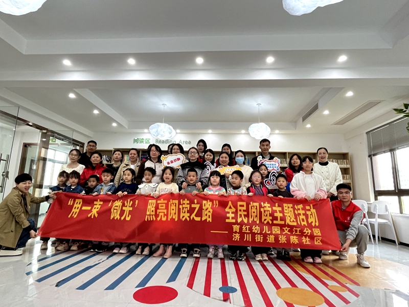在“4·23世界讀書日”即將來臨之際,育紅幼兒園文江分園“微光”志愿者團隊走進張陳社區新時代文明實踐站開展了閱讀主題社區服務活動。來自張陳街道社區的15組家庭以及社區志愿者共同參與活動。