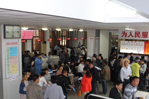 國慶長假至10月7日結(jié)束,加之國家對10月1日以后購買的1.6排量的小型汽車實行減半納稅的政策,10月8日節(jié)后一上班,車管所就迎來了國慶假期后的首個辦牌辦證高峰。截止上午10時,排隊叫號系統(tǒng)已發(fā)出201個號單,大隊院內(nèi)的前后停車場和車管所各業(yè)務(wù)窗口擠滿了前來辦牌辦證的車輛和群眾。根據(jù)車管所從4S店了解到的國慶期間銷售汽車的情況看,這種辦牌辦證高峰將持續(xù)一周左右。