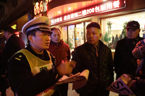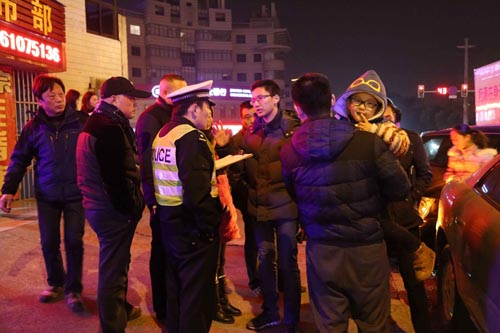 他們是泰興市公安交警大隊(duì)的普通民警和輔警。元旦,放棄了休息,放棄了團(tuán)聚,放棄了休閑,默默地守著路面,只為讓出行的你我更加順暢。錢峰是泰興交警大隊(duì)事故處理中隊(duì)的一名民警,2016年1月1日正好輪到他值班,圖為他正在處理一起交通碰擦事故。據(jù)了解元月1日當(dāng)天,錢峰和他的戰(zhàn)友們接到事故報(bào)警55起,而12月31日跨年的當(dāng)天,接警76起。 ![]() 一天處理76起事故