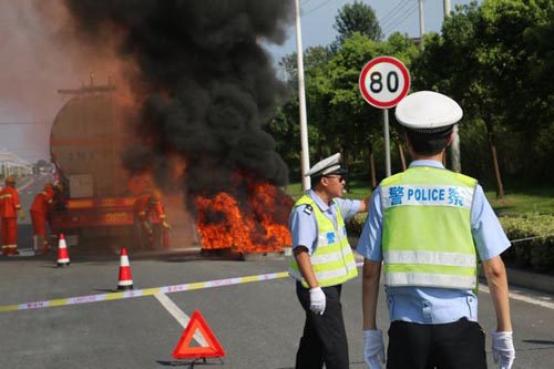 泰興交警大隊(duì)組織開展危化品運(yùn)輸泄漏事故應(yīng)急演練