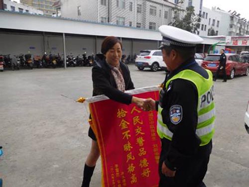 泰興交警大隊城區中隊輔警拾金不昧獲贈錦旗