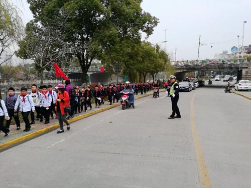 學(xué)生祭掃踏青忙 交警維護(hù)組人墻