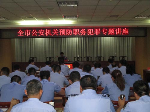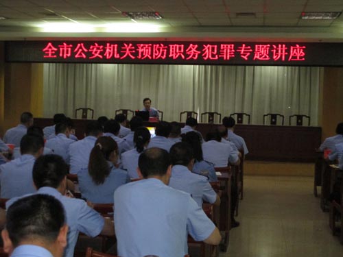 為進一步推進反腐倡廉體系建設,推動預防工作深入開展,增強廣大民警預防職務犯罪意識,有效減少和遏制民警職務犯罪的發生。6月5日下午,泰興市公安局舉辦了預防職務犯罪講座,邀請該市人民檢察院預防職務犯罪科科長吳斌作專題授課。吳斌同志主要從從兩個方面闡述了當前預防職務犯罪的重要性和必要性。一要高度重視基層一線警務人員的職務犯罪問題,有效遏制其犯罪勢頭;二是重視對民警瀆職犯罪的法制宣傳和預防教育。局黨委副書記、政委朱益民主持會議,在家的局班子成員,機關部門主要負責人及民警代表在主會場參加授課,交警大隊、巡特警大隊、看守所、拘留所及分局、各派出所全體人員在分會場收聽收看。 |