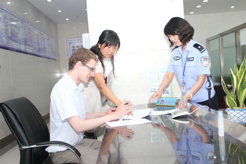 今年以來(lái),泰興市公安局出入境管理窗口共受理因私出國(guó)申請(qǐng)3495人次、往來(lái)港澳申請(qǐng)6699人次、往來(lái)臺(tái)灣地區(qū)申請(qǐng)374人次、外國(guó)人簽證及居留許可申請(qǐng)50人次、臺(tái)胞證及簽注申請(qǐng)11人次。圖為民警為來(lái)泰外國(guó)人辦理簽證。(成雪梅 攝)