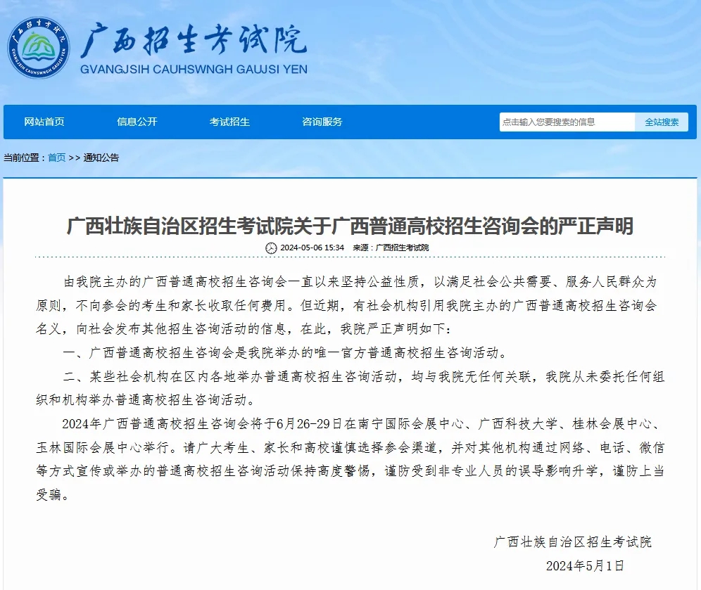 廣西招生考試院嚴正聲明!