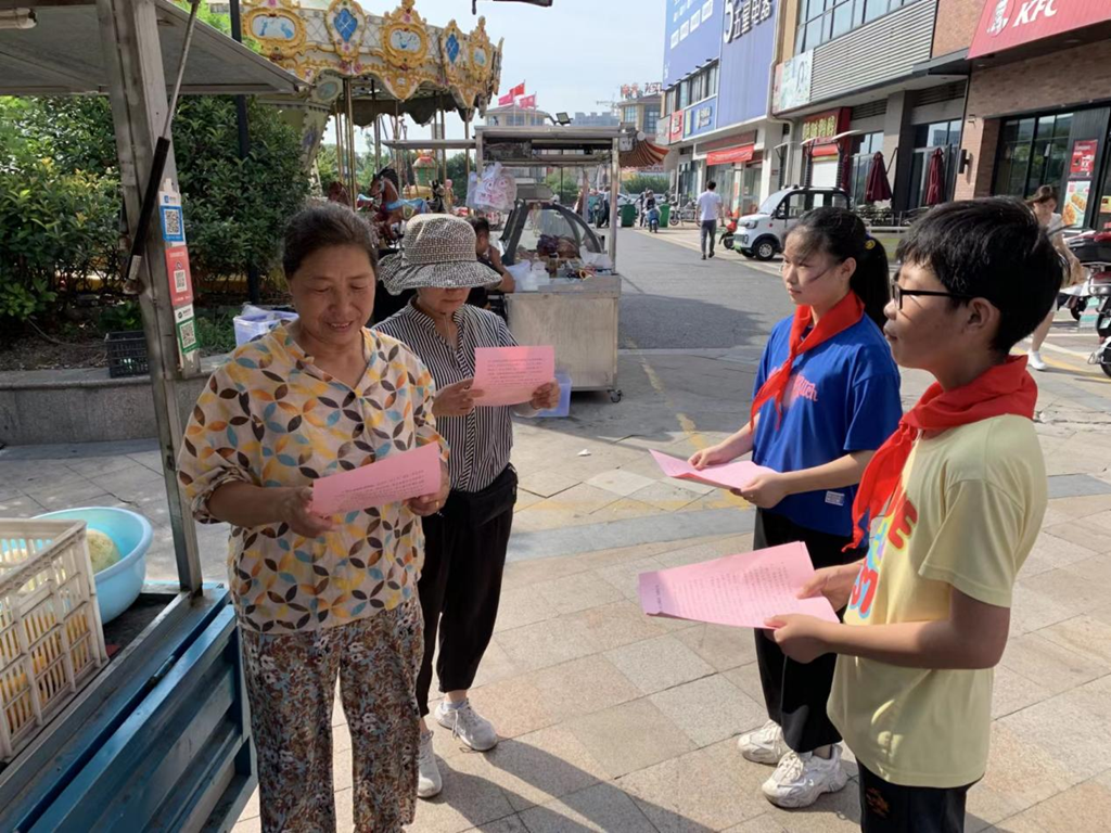 爭做創(chuàng)文明“宣傳員”。“叔叔,你好!這是‘文明新風(fēng)’倡議書,麻煩您看看,并幫忙宣傳。”一聲聲稚嫩的童聲,渲染著文明新風(fēng)的濃厚氛圍。古鎮(zhèn)微公益青年志愿者帶領(lǐng)著暑少年兒童,沿著街道向商鋪戶主、行人發(fā)放“文明新風(fēng)”倡議書。小朋友們用自己的“小手”拉起身邊的每一雙“大手”,一起爭做文明市民,共同構(gòu)建文明新風(fēng)尚。