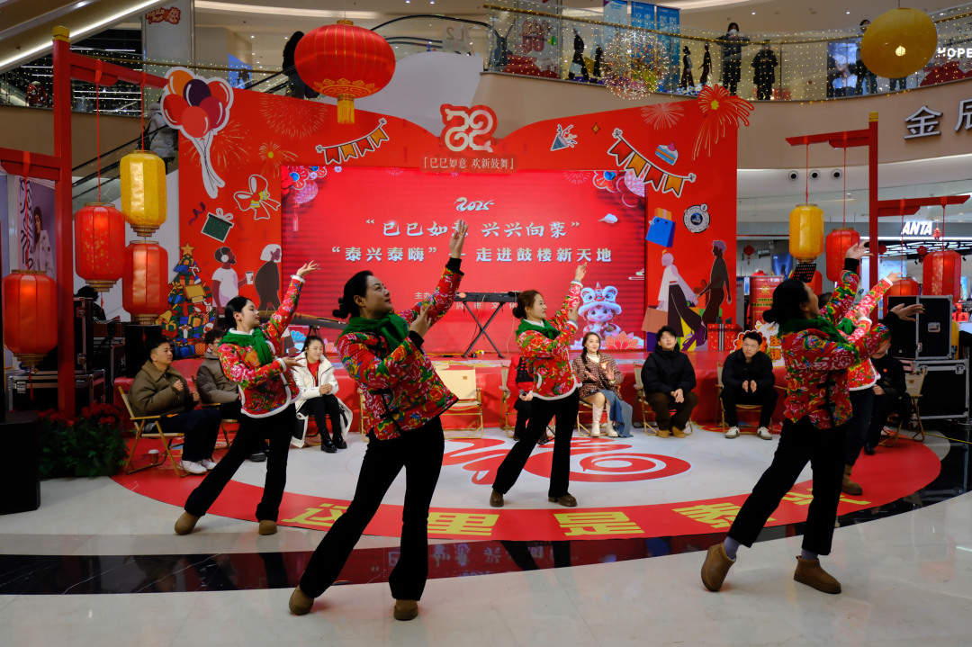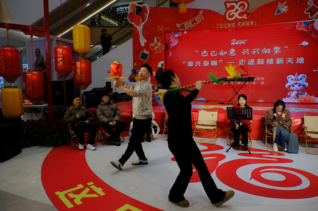 活動(dòng)由泰興市文體廣電和旅游局主辦、泰興市文化館承辦,通過(guò)多個(gè)精彩紛呈的快閃節(jié)目與市民熱情互動(dòng),不僅展示了泰興本土文化的獨(dú)特魅力,用輕快激昂的旋律傳遞積極的進(jìn)取精神,更以“文化+”的創(chuàng)新模式激活春節(jié)消費(fèi)市場(chǎng),為城市商業(yè)綜合體注入了新的活力。