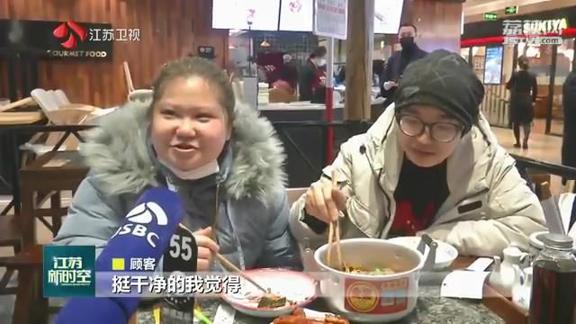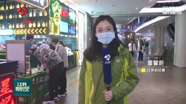 江蘇臺記者董馨蔚說:“這里是南京金鷹新街口店8樓的餐飲樓層。今天是周末,我們看到選擇堂食的顧客還是比較多的。大家在進入餐廳之前都是進行測量體、溫手部的消毒,同時要出示蘇康碼,而且還要掃碼一個‘安心碼’,可以追溯到客人的行動軌跡消費記錄。”