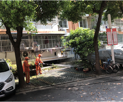 小區(qū)內(nèi),一輛升至半空的高空作業(yè)車上,園林工人正修剪著直逼二樓、三樓住戶窗戶的繁雜樹枝;另一邊,幾位環(huán)衛(wèi)工人正手持小型高壓噴水車沖洗小區(qū)一樓陽臺下難清理的衛(wèi)生死角……4月15日,南京市建鄴區(qū)吉慶社區(qū)的思源小區(qū)、貢園小區(qū)一派繁忙景象,建鄴區(qū)市政設(shè)施綜合養(yǎng)護(hù)中心組織全體干部職工以及專業(yè)從養(yǎng)護(hù)作業(yè)人員共計80余人,在這里開展了“環(huán)境大整治 共享美好新家園”為主題的環(huán)境衛(wèi)生整治行動。