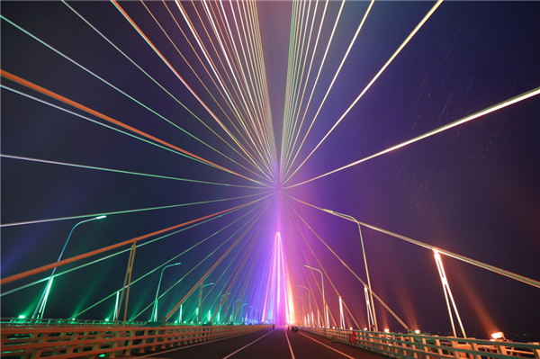 重點工程進行時:滬通長江大橋首次系統(tǒng)調(diào)試燈光
