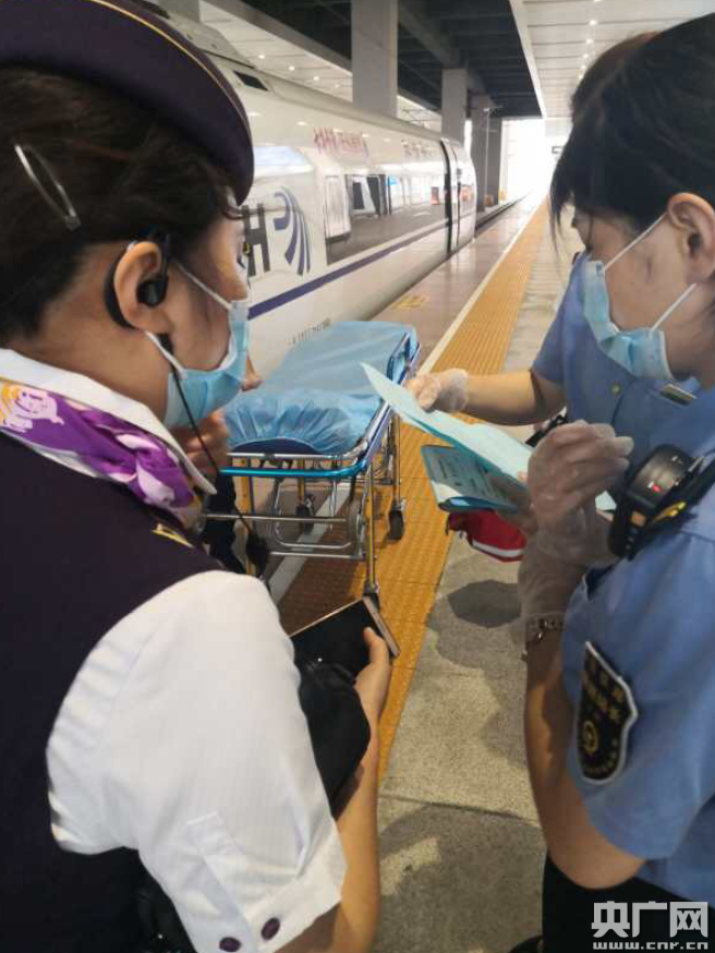 旅客乘車突發疾病(央廣網發 通訊員供圖) 央廣網合肥7月5日消息(記者王利 通訊員江沅沅)7月4日18點25分,阜陽西站鄭阜場車站值班員接列車調度員緊急通知,G2805次列車2號車廂有一位旅客突發疾病,急需120救護。接到通知后,車站值班員迅速向值班站長匯報,此時距離列車到達只有15分鐘了。時間緊迫,值班站長楊靜立即撥打120急救電話,告知旅客病況和列車運行情況,并開辟急救通道,安排專人引導救護人員快速上站臺。