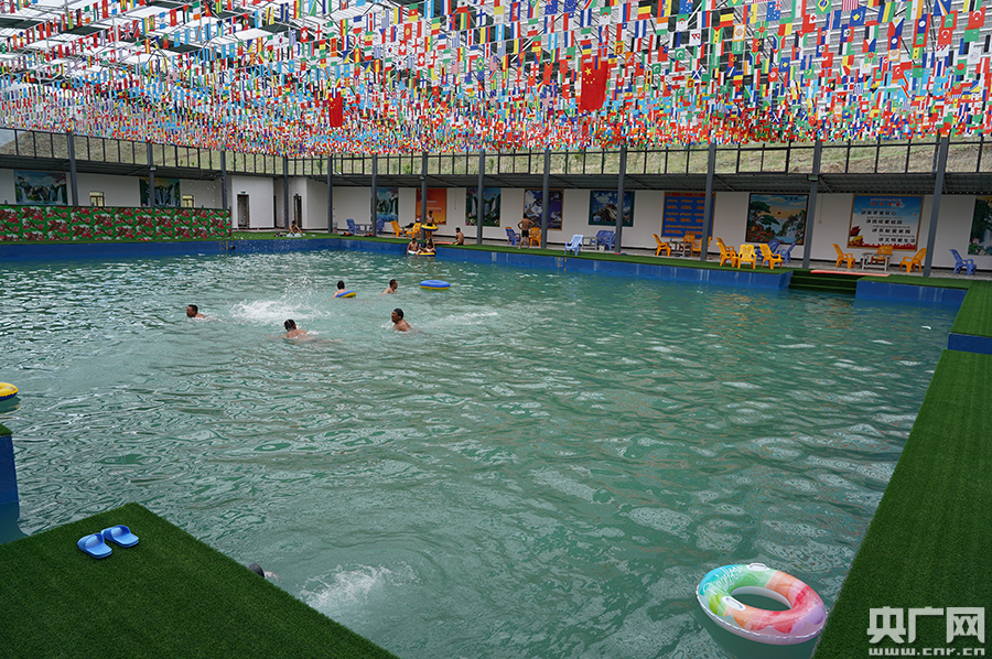 贊堂社區(qū)新建設(shè)的戶外游泳池項(xiàng)目已經(jīng)完工,豐富了當(dāng)?shù)匕傩盏膴蕵贩绞剑ㄑ霃V網(wǎng)記者 王宇 攝) |