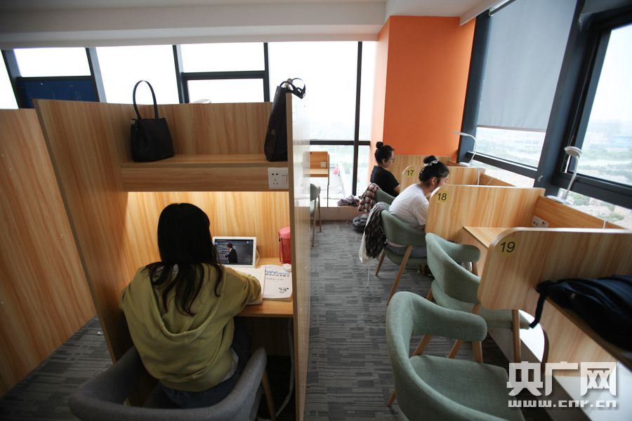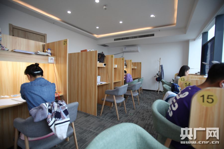 專心自習(央廣網記者 徐升 攝) “有一個女孩子在考研前20多天,辦了一個短時自習卡,她每天很準時來。我8點開門,她6、7點鐘就自己來這兒輸門禁密碼進來了,一直學到晚上兩三點,就這樣一直持續了20多天。”在經營自習室的這半年時間里,自認為已經小有成就的宋嘉斌看到了在這座城市最上進的一面,有很多人在不停地“奔跑”,努力地拼搏著。宋嘉斌說:“大家都很用功、很努力,不管他成不成功,考沒考上,至少讓我見識到了生活中還有這么多人在努力、在用功,自己也慢慢受到了影響,絕不敢停下腳步來。”
