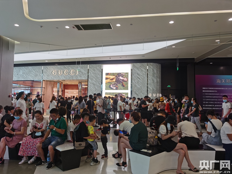 部分店面門口排起長龍(中央廣播電視總臺央廣記者 吳媚苗 攝) 三亞國際免稅城是全球最大單體免稅店,地上三層、地下一層,總面積12萬平方米,囊括350多個國際奢侈品牌,是以免稅為主題,融商業、餐飲、娛樂、休閑、購物于一體的綜合性旅游項目。今年7月1日起,海南離島免稅購物政策調整實施,除了每年每人離島免稅購物額度從3萬元提高至10萬元外,還取消了單件商品8000元的免稅限額規定。作為海南旅游業的一張“金名片”,海南離島免稅政策的逐步放寬,大幅提高了消費者的購物體驗,讓旅客消費能力在海南自貿港內就能夠釋放。 離島免稅購物新政策是《海南自由貿易港建設總體方案》公布以后,第一個實質性落地實施的重大政策。海南離島免稅購物成為全國人民關注的新熱點。政策正式實施以來,49天時間海南4家離島免稅店銷售額突破50億元。得益于政策的帶動,三亞國際免稅城知名度日漸提升,成為三亞旅游業的“磁鐵”,一度成為日進萬人的“景區”。不僅線下銷售火爆,線上促銷也相當給力,今年上半年三亞國際免稅城的網上商城聯合品牌商開展了一系列促銷活動,創下了一天內銷售額突破4000萬元的紀錄。