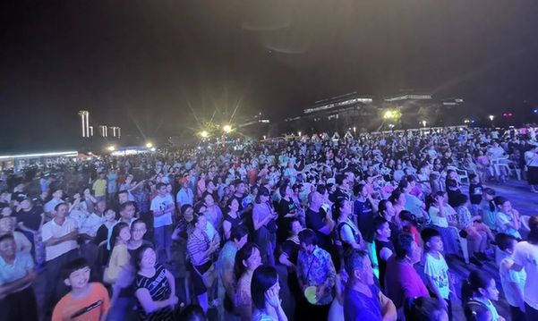 近日,每到華燈初上,位于南通海門的江海文化公園便成了網紅打卡地。風味美食、手作工藝、露天電影、科普展……這里不僅是小朋友的“天堂”,還能滿足不同年齡段的人對夜生活的美好期待。 夏夜浪漫眾人追捧 “看!我在江蘇,挺好的!”人流熙攘中,杜龍全程舉著手機,興奮地和家人視頻聊天。杜龍是一名來海門打工的建筑工人,此時他正在給河南老家的妻子直播文藝演出:“前天晚上來公園散步,才知道第二天晚上有表演,就帶著幾個工友一起來了!彼f,雖然很想念老家,但海門愜意舒心的生活環境成了他的“寬慰劑”。談話間,他的眼神里洋溢著樸實的幸福。 這是8月10日首屆海門區文旅夜市系列活動月啟動儀式的一景!捌婷钗牟,最美仲夏”江海公園文旅夜市,“酉時常樂”張謇文化旅游景區夜市,“創享仲夏,筑夢海門”東教城夜市……8月10日晚7:30,首屆海門區文旅夜市系列活動月暨第五屆江海大舞臺文化惠民月活動啟動儀式在江海文化公園舉行。 盡管啟動儀式現場細雨綿綿,卻沒有澆滅市民的熱情。隨著文藝演出開始,臺前觀眾越聚越多。舞臺絢爛的燈光,映照著一張張笑意盈盈的臉頰,從抱在手中的孩童,到頭發花白的老人,大家都沉浸在這夏夜的浪漫中。
