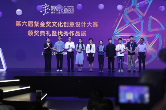 會上,大賽主承辦單位負責人為第六屆“紫金獎”文化創意設計大賽金獎獲得者頒獎。