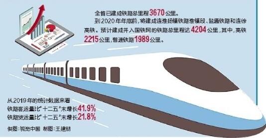 開欄的話 2020年是全面建成小康社會和“十三五”規(guī)劃收官之年,也是為“十四五”良好開局打下扎實(shí)基礎(chǔ)的關(guān)鍵之年。五年來,江蘇經(jīng)濟(jì)社會蓬勃發(fā)展,交通基礎(chǔ)設(shè)施加速補(bǔ)齊短板,企業(yè)創(chuàng)新能力顯著提升,貿(mào)易結(jié)構(gòu)持續(xù)優(yōu)化,居民生活水平不斷提高,消費(fèi)升級類產(chǎn)品保持較快增長。本報(bào)今日起推出“數(shù)說‘十三五’”系列報(bào)道,用數(shù)據(jù)說話,生動(dòng)展現(xiàn)江蘇“十三五”取得的發(fā)展成就,敬請關(guān)注。 去年12月16日9:05,D5668次列車從鹽城站鳴笛啟程,蘇北地區(qū)從此邁入“高鐵時(shí)代”。徐宿淮鹽高鐵是江蘇首條全線均在蘇北地區(qū)的鐵路客運(yùn)專線,開通運(yùn)營后,一舉結(jié)束淮安、鹽城、宿遷不通高鐵的歷史,各市之間實(shí)現(xiàn)高鐵互通,南北溝通更加便捷。 今年7月1日11:28,滬蘇通鐵路首班列車C3836次列車和C3839次列車,分別從上海站和南通西站啟動(dòng)。長三角核心區(qū)從此邁入“滬蘇通”時(shí)代,蘇浙滬包郵區(qū)的交通也更為快捷。 “十三五”以來,江蘇把建設(shè)現(xiàn)代綜合交通運(yùn)輸體系作為高質(zhì)量發(fā)展的最迫切任務(wù)加以推進(jìn),尤其高度重視補(bǔ)齊鐵路“短板”工作,作出了“以我為主、系統(tǒng)謀劃”“蘇北突破、蘇中提升、蘇南優(yōu)化”等一系列決策部署。 高鐵建設(shè)突飛猛進(jìn),蘇中和蘇北地區(qū)大步跟上。今年年底前,還有連淮揚(yáng)鎮(zhèn)鐵路淮鎮(zhèn)段、鹽通高鐵和連徐高鐵等線路陸續(xù)建成,屆時(shí),蘇北將全面搭上高鐵快車。 9月18日凌晨,如皋站牽引變電所內(nèi),斷路器的成功合閘,標(biāo)志著鹽通高鐵全線變電所全部送電成功,為下一步鹽通高鐵全線接觸網(wǎng)送電、聯(lián)調(diào)聯(lián)試和設(shè)備開通運(yùn)營奠定了堅(jiān)實(shí)的基礎(chǔ)。 鹽通高鐵今年底通車后,蘇北南下鐵路網(wǎng)更“活”。“鹽通高鐵北連徐宿淮鹽高鐵,南連滬蘇通鐵路,沿線百姓對這條高鐵十分期待!”中鐵二十四局集團(tuán)鹽通鐵路南通動(dòng)車所項(xiàng)目經(jīng)理劉宇峰回想加速推進(jìn)南通動(dòng)車所建設(shè)的日日夜夜,“動(dòng)車所也被稱為動(dòng)車組的‘停車場’和‘4S店’,一個(gè)地區(qū)有了動(dòng)車所,就意味著將擁有多列始發(fā)終到車,南通動(dòng)車所投入使用后主要服務(wù)于滬蘇通、鹽通、北沿江、寧啟、通蘇嘉甬鐵路的動(dòng)車組列車檢修和保養(yǎng)任務(wù)。受今年疫情影響,項(xiàng)目工期緊張、任務(wù)重,但項(xiàng)目非常重要,大家干勁十足,確保了動(dòng)車所如期交付。” 連淮揚(yáng)鎮(zhèn)鐵路作為江蘇中部貫通南北的重要通道,被喻為江蘇高速鐵路網(wǎng)“脊梁”,對帶動(dòng)長三角城際網(wǎng)建設(shè)和江蘇“四縱四橫”鐵路網(wǎng)發(fā)展有著極大的意義。連淮揚(yáng)鎮(zhèn)鐵路連淮段去年已經(jīng)通車。9月18日,復(fù)興號高速動(dòng)車組正式“上線”,加入連淮揚(yáng)鎮(zhèn)鐵路淮鎮(zhèn)段的聯(lián)調(diào)聯(lián)試檢測工作。“聯(lián)調(diào)聯(lián)試預(yù)計(jì)于今年11月底完成,連淮揚(yáng)鎮(zhèn)鐵路全線通車運(yùn)營進(jìn)入了倒計(jì)時(shí)。”中鐵二十四局集團(tuán)連鎮(zhèn)鐵路8標(biāo)三分部項(xiàng)目經(jīng)理趙峰說,連淮揚(yáng)鎮(zhèn)鐵路在鎮(zhèn)江接入滬寧城際,通車后連云港到南京只需2小時(shí),淮安到南京也不再需要從徐州繞道。 9月12日,省鐵路集團(tuán)組織召開寧淮城際鐵路洪澤、金湖站房概念性設(shè)計(jì)方案專家審查會。在建的寧淮鐵路預(yù)計(jì)2023年建成通車,屆時(shí)將與徐宿淮鹽高鐵以及連淮揚(yáng)鎮(zhèn)鐵路互聯(lián)成網(wǎng),可實(shí)現(xiàn)連云港、淮安、鹽城、宿遷等蘇北各設(shè)區(qū)市至南京1.5小時(shí)交通圈。 據(jù)進(jìn)度計(jì)劃安排,連徐高鐵在年底建成并具備開通條件后,連徐高鐵在徐州銜接京滬高鐵、鄭徐高鐵,在連云港銜接沿海鐵路大通道,隴海大通道全線貫通,連云港對外時(shí)空距離進(jìn)一步縮短。 “十三五”以來,我省創(chuàng)造了一年內(nèi)開工建設(shè)兩個(gè)高鐵項(xiàng)目、寧淮城際鐵路從獲得規(guī)劃支撐到實(shí)現(xiàn)開工僅用8個(gè)月等多個(gè)新紀(jì)錄,彰顯了加快鐵路建設(shè)發(fā)展的“江蘇速度”。先后建成青鹽、寧啟二期、徐宿淮鹽、連淮、滬蘇通一期等一批重大項(xiàng)目,新增運(yùn)營鐵路895公里,占全省鐵路運(yùn)營總里程的24.4%。從去年的統(tǒng)計(jì)數(shù)據(jù)來看,鐵路客、貨運(yùn)量分別比“十二五”末增長了41.9%和21.8%,反映出鐵路建設(shè)發(fā)展對于促進(jìn)經(jīng)濟(jì)要素流通、支撐產(chǎn)業(yè)結(jié)構(gòu)升級、服務(wù)民生福祉改善的綜合效應(yīng)正在逐步顯現(xiàn)。 “軌道上的江蘇”藍(lán)圖漸成“實(shí)景”,尤為突出的是,蘇北腹地從“地?zé)o寸鐵”到逐步突破,補(bǔ)上了江蘇高鐵半邊天。截至目前,全省建成鐵路總里程已達(dá)到3670公里,到年底“十三五”收官,江蘇將建成并入國鐵網(wǎng)的鐵路總里程達(dá)到4204公里,其中高鐵2215公里,普速鐵路1989公里,國家干線3898公里(高鐵1909、普鐵1989),區(qū)域城際鐵路306公里。(朱