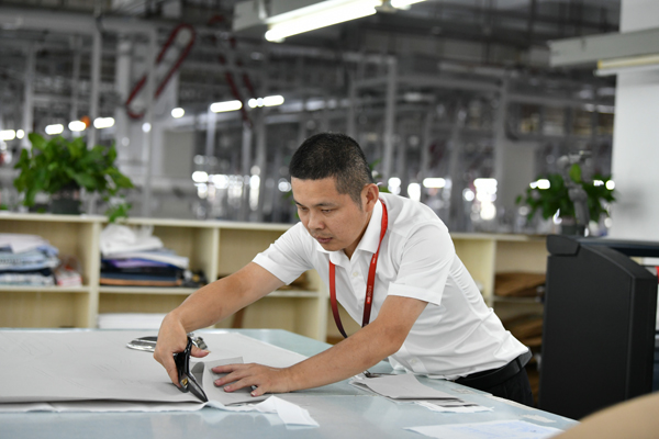 設(shè)計師吳偉和郭軍偉交流設(shè)計要領(lǐng)和工藝要求 讓柔軟的面料變成符合設(shè)計師設(shè)計氣質(zhì)的服裝,需要“骨骼”。在大多人眼里,版師就是一個普通技術(shù)工種,可在紅豆男裝研發(fā)中心設(shè)計部二部部長吳偉眼里,郭軍偉就是她設(shè)計的每一款襯衫“骨骼”塑造者。 “‘畫龍畫虎難畫骨’。骨骼既要有嚴絲合縫的精密,也需要揮灑自如的精細,所以對于服裝樣板的精準把握和細節(jié)處理可見版師真功夫。”吳偉從事襯衫設(shè)計已經(jīng)十多年,她和郭軍偉合作已經(jīng)5年多,他們合作的襯衫每年都會產(chǎn)生門店暢銷的“爆款”。在郭軍偉眼里,從設(shè)計圖稿到制版,不是簡單的制作,而是創(chuàng)作,因為每個人的身形尺寸都是唯一,有人肩寬,有人平肩,有人溜肩,脖子、腰身各有粗細,在他看來,每一件襯衫都是獨一無二的藝術(shù)品。 “沒有工匠精神 ,就不可能打造金字招牌的中國制造。郭軍偉身上那種務(wù)實低調(diào)、遇到難題不推諉,對產(chǎn)品精雕細琢、追求完美的工匠精神,讓我印象深刻。”吳偉說,郭軍偉的優(yōu)秀不是一種行為,而真的是一種習慣。 職業(yè)生涯始終圍著制版轉(zhuǎn),郭軍偉靠著對職業(yè)技能的完美追求,靠著對技術(shù)的忠實傳承和鉆研,靠著幾十年如一日的專注和堅守,將中國版師的夢,描繪得愈發(fā)豐富多彩。 |