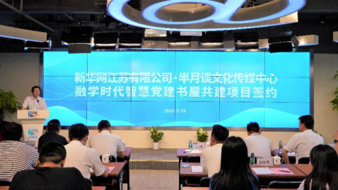 新華網(wǎng)江蘇有限公司與半月談“融學(xué)時代智慧黨建書屋”共建項(xiàng)目簽約儀式在南京舉行