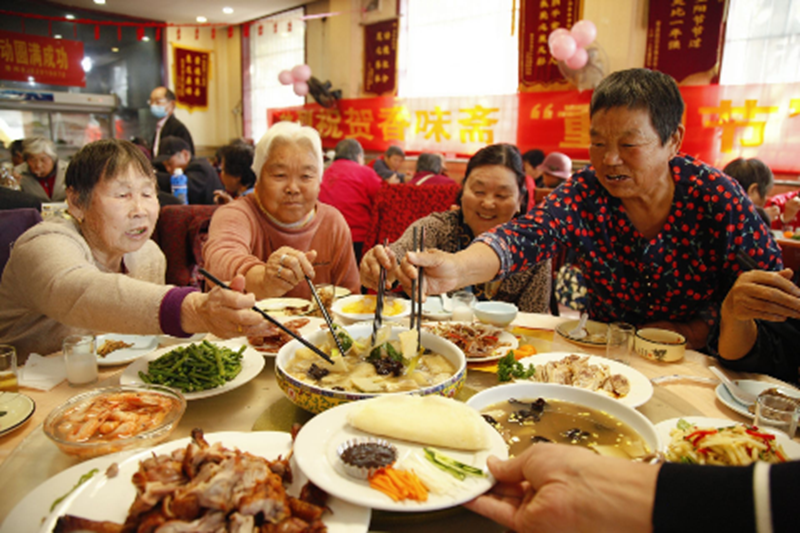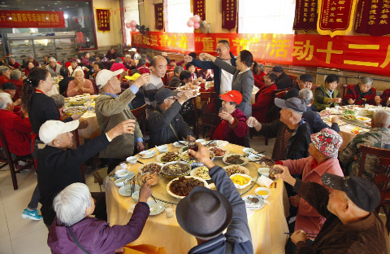 10月24日中午,江蘇省徐州市中山北路上一家名為“香味齋”的小飯店里,200多位老人端坐在裝飾了彩帶、氣球的大廳里,老人們喝茶、聊家常,隨后又享用了豐盛的重陽宴。這家飯店老板是一對父子,從2009年起,每年重陽節(jié)前都會推掉生意,宴請社區(qū)的老人集體過重陽節(jié),重陽宴也成為徐州市鼓樓區(qū)李沃社區(qū)老人們期盼的節(jié)目。
