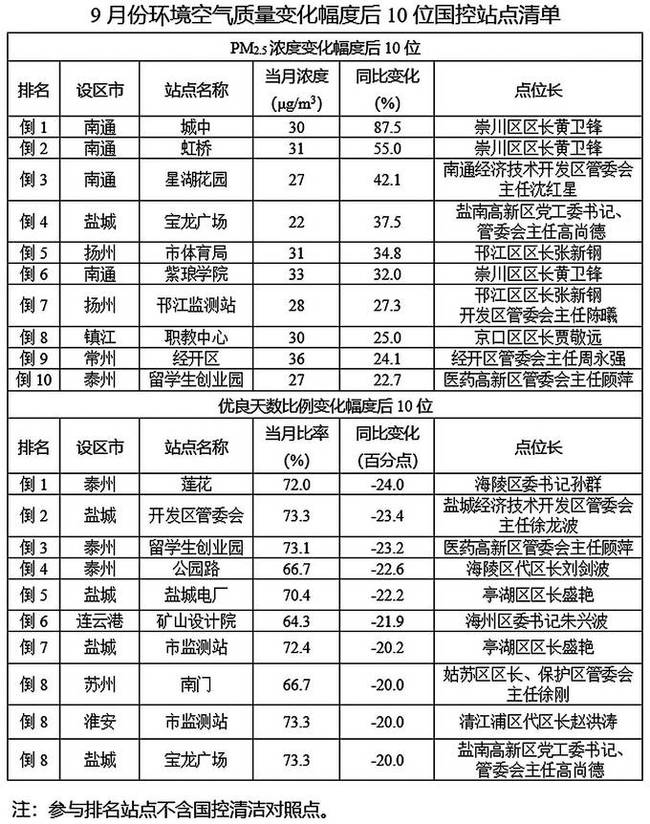 據(jù)省委、省政府關(guān)于打好污染防治攻堅戰(zhàn)的實施意見要求,發(fā)布9月份各設(shè)區(qū)市環(huán)境質(zhì)量約束性指標目標任務(wù)完成進展情況,以及環(huán)境空氣排名靠后站點清單和水環(huán)境突出問題斷面清單。(吳瓊)