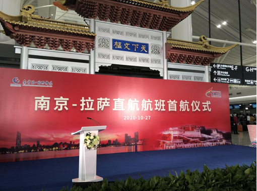 10月27日,南京與拉薩直飛航線成功首航。南京-拉薩直航航班首航儀式分別于南京祿口機場與拉薩貢嘎國際機場舉行,由江蘇援藏前方指揮部與拉薩人民政府、西藏航空有限公司聯合舉辦。 江蘇省對口幫扶支援合作工作領導協調小組成員王志忠、西藏自治區政府副秘書長徐景浙出席首航儀式并致辭。拉薩市市長果果、江蘇援藏前方指揮部總指揮沈海斌、江蘇援藏前方指揮部副總指揮張文浩、西藏航空有限公司副總經理羅勇軍等同志出席首航儀式。