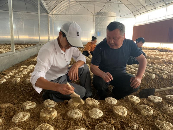 村民在專家指導下維護靈芝菌包(央廣網發 黃凌晨 攝) 產業扶貧——“小靈芝”帶來“大收益” 走進位于紅石村的靈芝種植大棚,一壟壟靈芝已經收獲完畢,被擺上了展示架,一同被展示出來的還有靈芝孢子粉、靈芝酒、靈芝盆景,一株小小的靈芝在這里變換出了不同形態。 可別小看這株手掌大小的食用菌,就在這4畝不到的大棚里,靈芝產量可達到1噸,靈芝孢子粉產量達到800斤!爱a品售出后,保守收入能超過百萬元!闭f起今年的收獲,靈芝種植技術組組長張元秀滿臉笑意。 時間回溯到2019年3月,彼時,岳麓區第二批對口幫扶龍山工作隊剛在龍山落腳!霸鯓訋Т迕駛兠撠殹薄翱梢园l展什么產業項目”這兩個問題一直縈繞在他們的腦海。 空想不行,還要調查。扶貧隊邀請農業專家進行了三輪考察后,發現紅石村氣候條件適宜、水源充足,適宜種植靈芝。“靈芝種植周期較短、附加價值高且耐儲存,種植風險可控。” 紅石村村民張天明今年52歲,因為身體原因不能外出務工,微薄的收入都用在了供養兩個孩子的生活和教育上,兩年前還是村里的建檔立卡貧困戶。 “小靈芝”讓他的生活發生了“大變化”。護土、澆水、靈芝維護……這些并不復雜的活計讓張天明一天能拿到100元工資。“不算上我種百合的收入,在這里一年收入就能破萬!彼χ嬖V記者,現在他的收入更多、更穩定了。 同樣開心的還有張元秀,現在他和幾個村民都掌握了種植技術,來年便可以用今年賺到的“第一桶金”繼續采購菌包、種植靈芝,將種植大棚的面積再擴大些!敖衲攴N植積累了很多經驗,明年我們就更有信心了。” 走出靈芝大棚,記者注意到一塊大大的招牌——紅石田園綜合體!斑@邊300余畝的地已種上了果樹,下一步還將發展觀光旅游、瓜果采摘為一體的田園綜合體!睆堅愕囊环捵屓瞬唤谙,幾年后,桃樹、李子樹紛紛掛果,紅石村靈芝滿園、瓜果飄香,村民們的生活也將日益甜蜜。
