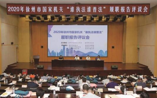 省委依法治省辦、省司法廳聯(lián)合印發(fā)《江蘇省國(guó)家機(jī)關(guān)“誰(shuí)執(zhí)法誰(shuí)普法”履職評(píng)議實(shí)施辦法》,明確“誰(shuí)執(zhí)法誰(shuí)普法”責(zé)任單位工作任務(wù)和考評(píng)細(xì)則,推動(dòng)形成分工負(fù)責(zé)、各司其職、齊抓共管、全社會(huì)廣泛參與的普法工作合力。圖為徐州市2020年國(guó)家機(jī)關(guān)“誰(shuí)執(zhí)法誰(shuí)普法”履職評(píng)議現(xiàn)場(chǎng)。