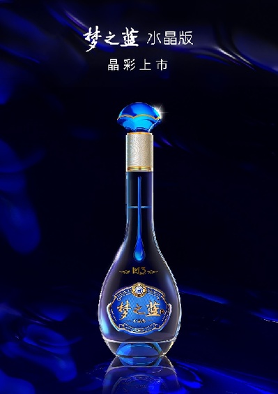 突破原有形象,夢之藍水晶版在包裝上進行了煥新。瓶身的設計在保持原有造型的基礎上,采用幻彩水晶瓶、藍色蒼穹底,瓶體夢幻多彩,如水晶般自然純美,整體更顯精致典雅,更符合時代精英的審美。與此同時,瓶頸和瓶身都有所加大,容量由原來的500ml增加到了550ml,在第一時間抓住消費者眼球。