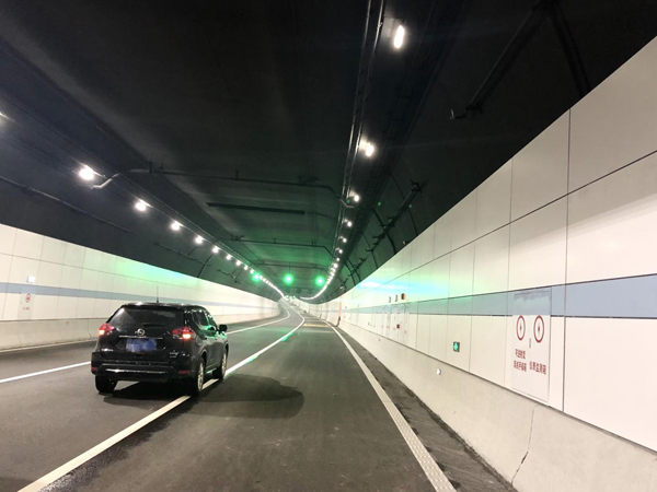 長(zhǎng)江五橋夾江隧道(龐雪汀 攝) 在正式建成通車之后,長(zhǎng)江五橋夾江隧道還將與南京應(yīng)天大街隧道、定淮門隧道實(shí)施一體化運(yùn)營(yíng)管理,建設(shè)一體化指揮調(diào)度平臺(tái)和管養(yǎng)信息化系統(tǒng),各通道應(yīng)急救援力量將相互調(diào)配、互為補(bǔ)充。 此外,在長(zhǎng)江五橋隧道內(nèi),充滿人性化的智慧措施隨處可見(jiàn)。隧道橋面上的橫向條紋,分為黃色和藍(lán)色兩種。當(dāng)車輛開過(guò)時(shí),如果墻壁側(cè)面的條紋顯示藍(lán)色,就代表經(jīng)過(guò)長(zhǎng)江水段,黃色則代表經(jīng)過(guò)陸地交通段。隧道內(nèi)還將全程覆蓋5G信號(hào),即使隧道內(nèi)暫時(shí)發(fā)生擁堵,市民也可以安心駕車,不用擔(dān)心無(wú)法通過(guò)網(wǎng)絡(luò)查看前方路線或與外界聯(lián)系。