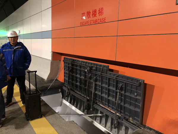 長(zhǎng)江五橋夾江隧道內(nèi)的疏散樓梯(龐雪汀 攝)