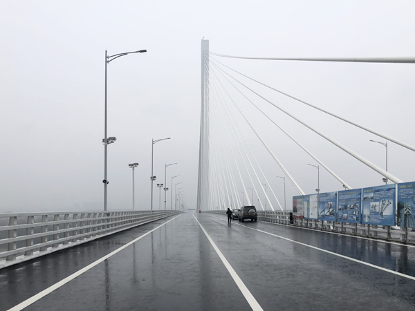 長(zhǎng)江五橋橋面(龐雪汀 攝) “最讓我們驕傲的是,從設(shè)計(jì)、工藝到材料,長(zhǎng)江五橋全部實(shí)現(xiàn)了國(guó)產(chǎn)!”南京市公建中心橋隧一處處長(zhǎng)沈斌說(shuō)。沈斌表示:“粗骨料活性粉末混凝土橋面板,既有效預(yù)防了鋼材料容易疲勞開裂的風(fēng)險(xiǎn),又解決了瀝青的材料缺陷。這種結(jié)構(gòu)的強(qiáng)度是傳統(tǒng)材料的五倍,費(fèi)用卻是原來(lái)的一半,大大提高了橋體的耐久性,提升了橋面壽命! 據(jù)中交二公局南京長(zhǎng)江五橋A2標(biāo)項(xiàng)目經(jīng)理杜洪池介紹,長(zhǎng)江五橋的鋼殼混凝土組合索塔,在我國(guó)橋梁工程建設(shè)中,有著非常廣闊的運(yùn)用前景!斑@種組合具有優(yōu)良的力學(xué)性能、較高水準(zhǔn)的工廠化水平、易實(shí)現(xiàn)的無(wú)污染管控,較好地契合了我國(guó)目前在基礎(chǔ)設(shè)施建造中大力倡導(dǎo)的工業(yè)化和綠色化理念。它不僅適用于斜拉橋、懸索橋等纜索承重橋梁,還可以應(yīng)用于連續(xù)梁、連續(xù)剛構(gòu)乃至其他梁式橋的橋墩中!倍藕槌卣f(shuō)。 環(huán)保:像“拼積木”一樣“拼”起大橋 不僅在材料的使用上“獨(dú)樹一幟”,在五橋的建設(shè)過(guò)程中,還采用了預(yù)制拼裝的方法,主塔、橋面、橋墩等這些構(gòu)建都是在工廠完成生產(chǎn),再運(yùn)到施工現(xiàn)場(chǎng)進(jìn)行組裝的。“我們的長(zhǎng)江三橋、四橋只是有少部分的橋體采用了預(yù)制拼裝,而五橋有超過(guò)90%的工程都是預(yù)制拼裝的!鄙虮笳f(shuō)。 據(jù)沈斌介紹,這樣的建造方式,使得五橋的建造過(guò)程更加高效環(huán)保。一方面,預(yù)制拼裝大大節(jié)省了施工的時(shí)間,一邊施工,一邊生產(chǎn)預(yù)制件,工期比傳統(tǒng)的澆筑法節(jié)約了一半時(shí)間;另一方面,預(yù)制拼裝的建造過(guò)程,產(chǎn)生的噪音低、揚(yáng)塵少,對(duì)周圍百姓的生活幾乎沒(méi)有造成影響。 其實(shí),在環(huán)保施工方面,長(zhǎng)江五橋做出了頗多嘗試。項(xiàng)目在施工區(qū)域布設(shè)全封閉式圍擋,所有裸土進(jìn)行了環(huán)保綠網(wǎng)全覆蓋,項(xiàng)目還采用了“綠色環(huán)保工廠式攪拌站”建站方案,將節(jié)能、減排、環(huán)保放在首要位置,設(shè)置了自動(dòng)噴淋霧炮機(jī)、砂石分離機(jī)、污水沉淀池等,全密閉拌合站避免和減少了在施工期間揚(yáng)塵、噪音對(duì)周邊環(huán)境產(chǎn)生污染,實(shí)現(xiàn)了大氣零污染、污水零排放。 安全:夾江隧道內(nèi)5分鐘可疏散200人 在開車經(jīng)過(guò)隧道時(shí),如果發(fā)生火災(zāi)怎么辦? 在長(zhǎng)江五橋夾江隧道內(nèi),14個(gè)安全疏散出口、隨時(shí)待命的電瓶車,為火災(zāi)應(yīng)急疏散“吃了一顆定心丸”。 “一旦發(fā)生火情,車輛內(nèi)人員可以通過(guò)安全疏散樓梯疏散,然后乘坐應(yīng)急電瓶車快速逃離現(xiàn)場(chǎng),4到5分鐘內(nèi),就能夠疏散約200人。”沈斌說(shuō)。