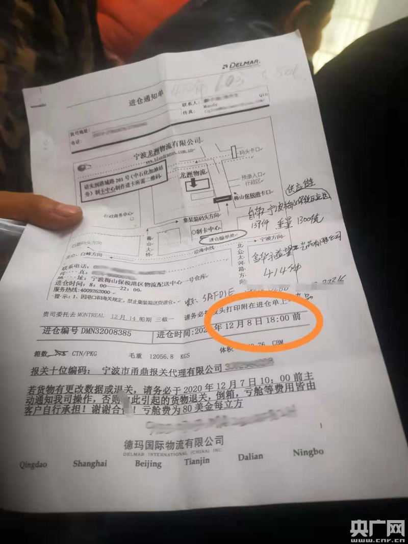 本應8日下午18:00前進倉的貨物,到了9日下午還在等待放行(中央廣播電視總臺央廣網記者 曹美麗 攝)