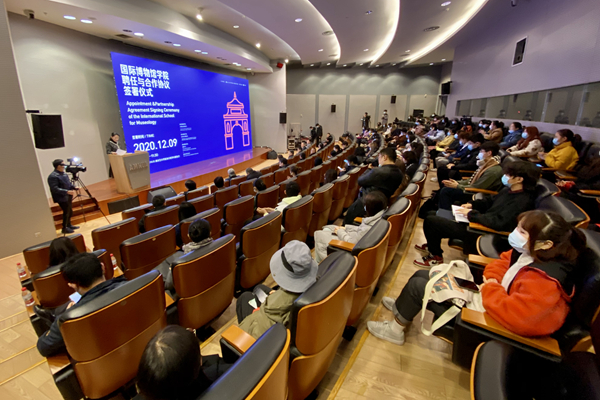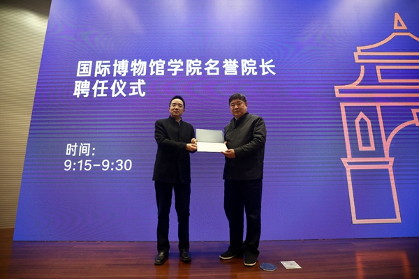 活動現(xiàn)場(李澤睿 攝) 據(jù)悉,此次聘任與合作協(xié)議簽署儀式主要分為“國際博物館學院名譽院長聘任儀式”“國際博物館學院戰(zhàn)略合作協(xié)議簽署儀式”“國際博物館學院揭牌儀式”“兼職教授聘任儀式”“國際博物館學院名譽院長主題演講”等環(huán)節(jié)。中國文物學會會長、故宮博物院第六任院長單霽翔先生正式被聘為國際博物館學院名譽院長。
