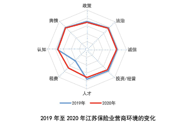 《報告》課題組向13個設區市的保險機構和從業人員發放問卷3萬余份,回收有效問卷21585份,旨在通過政策、法制、誠信、投資/經營、人才、稅費、保險認知和輿情等八個維度,組成一幅“雷達圖”,直觀展現了全省以及13個設區市保險業營商環境水平。《報告》結果顯示,從保險業營商環境綜合指數排名情況來看,南京、蘇州、無錫、常州和宿遷位列前五,鹽城、徐州、揚州、連云港和鎮江排在后五位。 江蘇向來是保險大省。數據顯示,截至今年三季度末,全省原保費收入達到3325億元,同比增長7.7%,其中人身險原保費收入2563億元,同比增長7.33%,財產險原保費收入762億元,同比增長9%,位于全國前列。 保險業的發展,是一個地區綜合經濟實力的展現。相比于保險大省的地位,江蘇卻不是保險強省。保險密度和保險深度是保險業發展的兩項重要指標,前者反映著保險普及程度,后者則反映著保險在國民經濟中的地位與貢獻。數據顯示,2019年江蘇保險密度為4647元/人,位于北京、上海、廣東之后,排全國第四位,但總體高于全國平均水平。而保險深度僅為3.8%,明顯低于廣東、上海和浙江,甚至低于全國4.3%的平均水平,與江蘇經濟發展總量不匹配。可以說,全省保險密度逐年顯著增高與保險深度一直低位徘徊的走勢,反映出江蘇保險業普及和深化進程中“大而不強”的情況一直存在。 江蘇銀保監局原副局長、省域保險業營商環境研究課題組顧問王寶敏認為,從現代經濟社會的“助推器”和“減震器”角度來看,保險業具有經濟保障、資金融通和社會管理功能,尤其是在防風險、美生態、惠民生方面可以發揮重要的作用。“每個維度都對應著當地營商環境建設體系中的一環,《報告》目的展現各地保險發展優勢和短板,希望各地重視保險業的作用,激發保險業的積極意義。”王寶敏說。