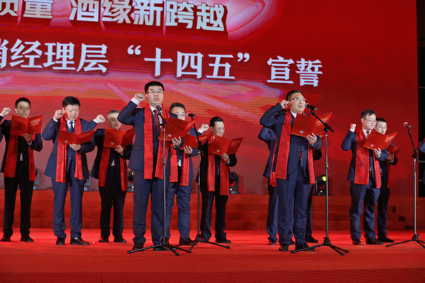 宣誓出征“十四五”(席航飛 攝) 2021年是今世緣“十四五”規(guī)劃開局之年,是今世緣全國化戰(zhàn)略邁出跨越式發(fā)展的起步之年。周素明提出要做好五項重點工作: 全力打好市場營銷四大戰(zhàn)役。即全新啟動“V系攻堅戰(zhàn)”,奮力搶占黃金賽道;理性謀劃“K系提升戰(zhàn)”,全力打牢高端化基礎;用心組織“典藏激活戰(zhàn)”,持續(xù)彰顯差異化特色;堅決打贏“省外突破戰(zhàn)”,加快推進全國化進程。 務實推進營銷變革落地。按照“以客戶為中心,以奮斗者為本”的理念,加快營銷系統(tǒng)機制變革,包括組織、授權、監(jiān)管、績效變革及主體創(chuàng)新,構建責權利統(tǒng)一的管理運行機制,增強市場運作效率。 全新謀劃人才結構保障。以“十四五”戰(zhàn)略目標為引領,梳理、明晰公司關鍵人才資源需求,立足長遠做好隊伍規(guī)劃,注重量質(zhì)并舉,完善策略舉措,建立具有企業(yè)特色、符合企業(yè)文化的人才梯隊,打造公司人才新高地,深化人才強企基礎戰(zhàn)略。 有序推進南廠區(qū)建設。按照“總體規(guī)劃、分步實施”原則,有序推進南廠區(qū)技改項目建設。2021年,美酒銀行二期將投入使用,智能化包裝物流中心將基本建成,中華緣文化中心全面啟動。 全面放大紅色基因。以獻禮建黨100周年為契機,全方位、立體化、多層次放大紅色基因,涵養(yǎng)家國情懷;致力于黨建觸角的有效延伸,實現(xiàn)黨建鏈條與經(jīng)濟鏈條協(xié)同運行,帶動相關方心懷國家、情系百姓,在感恩社會、回報社會的實踐中不忘初心、勇?lián)姑?/p> 同頻共振:2021今世緣廠商攜手再出發(fā) 今世緣一直視廠商合作為彌足珍貴的緣分,希望“今世有緣,相伴永遠”。會上,周素明向合作伙伴提出共享高質(zhì)量發(fā)展成果的殷切期望,表態(tài)將深度構建廠商命運共同體,讓廠商合作之路越走越寬。