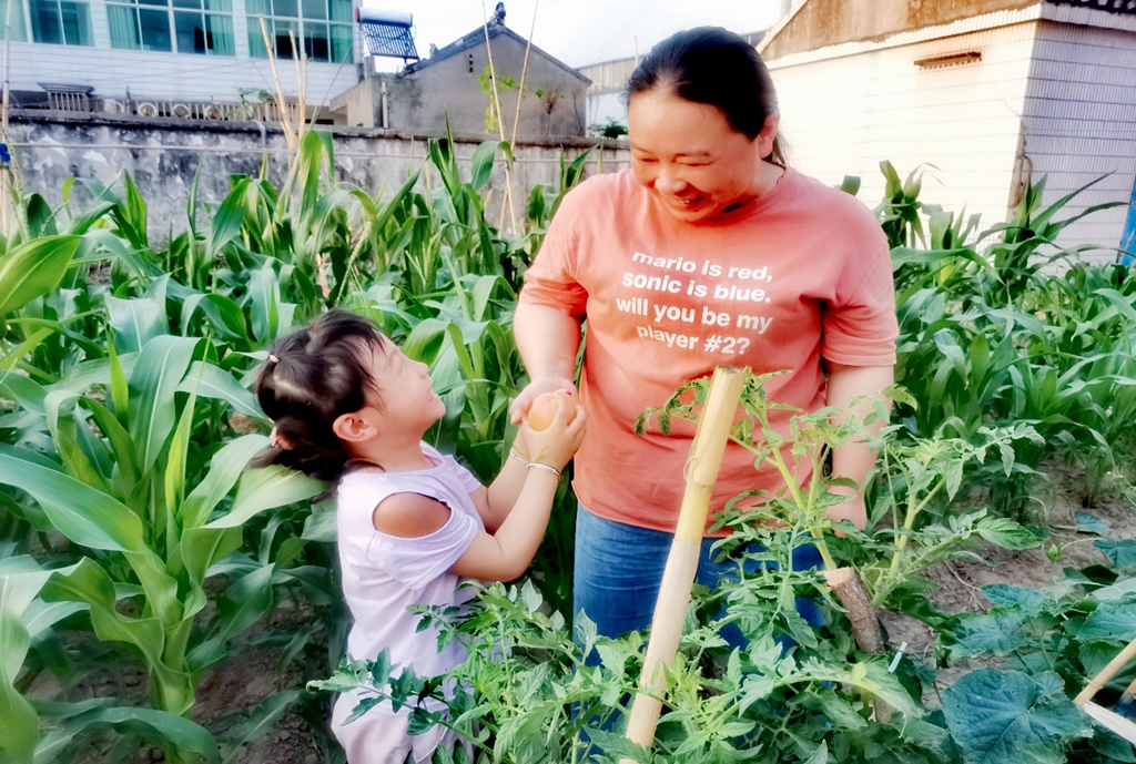 “奶奶,我種的番茄比你的拳頭還大”,此刻的小貝貝也顧不上腳下的泥巴和頭頂的烈日,滿心歡喜地拽著奶奶炫耀著,得意得很吶!這是傍晚時分,禮士社區 “四季園”的溫馨一幕。