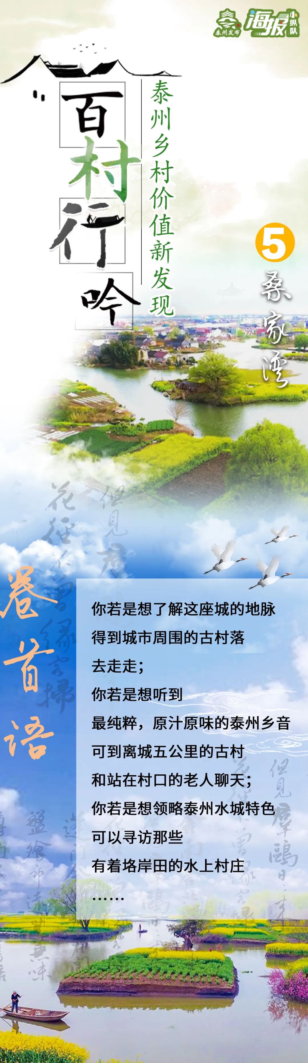 桑家灣 在泰州城北十二里 有著千年歷史 一片淺草迷蒙入眼簾 遠遠看 村莊像漂浮在水面上