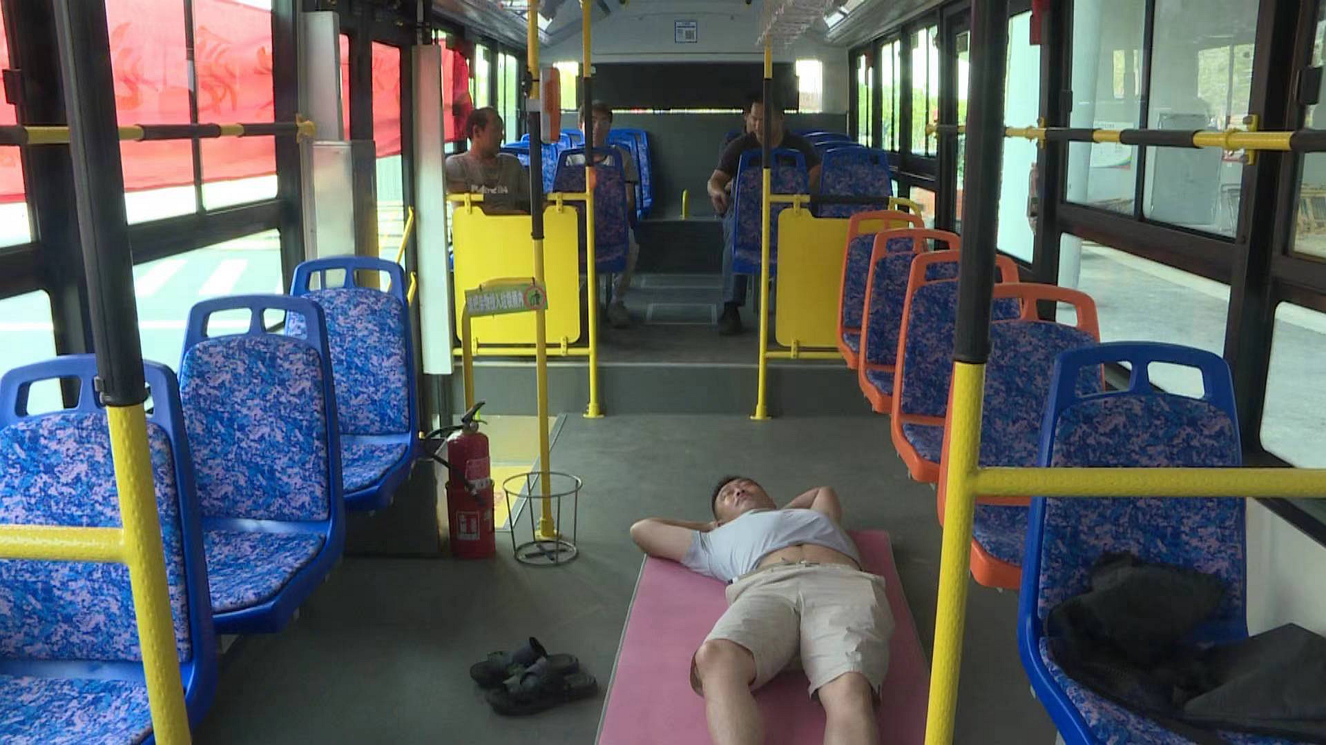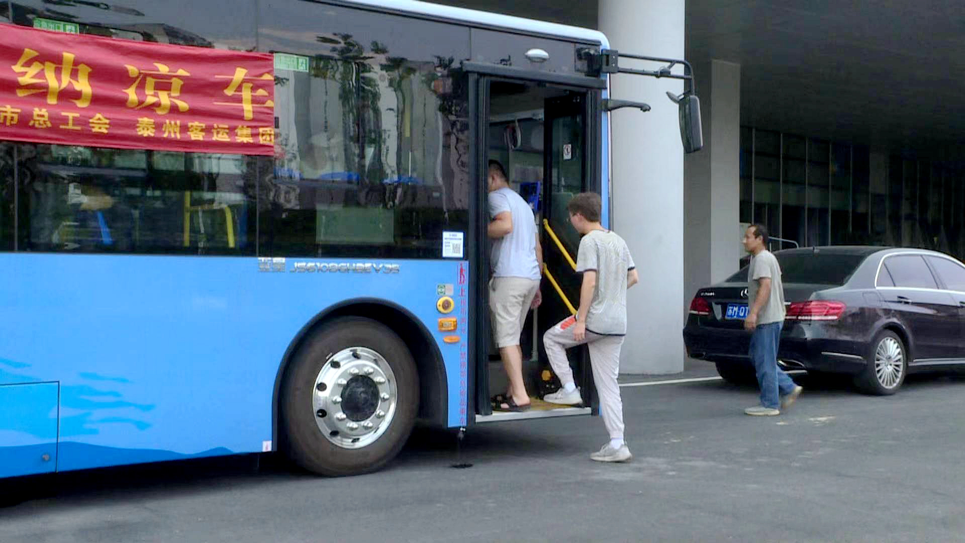 酷暑之下,戶外勞動者的工作狀況牽動著大家的心。近日,江蘇省泰州市總工會聯合泰州客運集團推出“愛心避暑納涼車”服務,從7月28日至8月底,泰州客運集團每天抽調部分新能源公交車固定時間停放在固定地點,為一線高溫作業(yè)人員提供納涼、休息之所。 正午,驕陽似火。一輛掛著“戶外勞動者愛心避暑納涼車”橫幅的藍色新能源公交車靜靜地停在泰州市體育公園田徑場附近。車門一開,一股涼氣迎面撲來,在現場剛忙完上午工作的戶外勞動者們說說笑笑上了車,工作人員立即遞來了仁丹和礦泉水。納涼車廂內設置了便民服務箱,免費提供飲用水、清暑解熱藥品和防疫物資等。 楊純軍是在泰州市體育公園的施工人員,最近幾乎每個中午都會到公交車上午休。他介紹,外面是火爐,車里特別涼快,真是“兩重天地”。同樣是戶外勞動者的陳報,則打開“避暑納涼車”為大家準備好的瑜伽墊午休。他稱贊,這個瑜伽墊讓大家休息方便,太好了! 泰州市總工會黨組書記副主席耿曉利介紹:中午的時候,在一些廣場或者施工地點,不少戶外勞動者席地而坐,缺乏午休的地方;而中午12點到下午15點之前,乘坐公交汽車的市民相對較少,車輛有空閑。于是泰州市總工會聯合泰州客運集團更好地利用社會資源,關愛幫助戶外勞動者。“戶外勞動者愛心避暑納涼車”每天中午十一點到下午三點之間在泰州市人民公園、金融廣場、泰州市體育公園等各個點停放,歡迎戶外勞動者上車午休,在此期間公交車會持續(xù)開放空調,公交車駕駛員在車內值守,確保車輛安全。