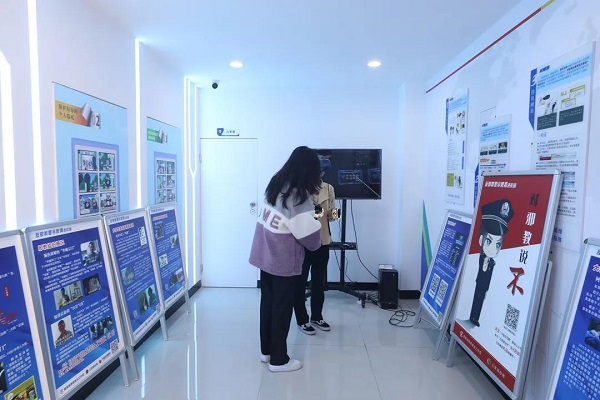 暑假前,民警方彥琨常規巡查校園時發現,江蘇農牧科技職業學院食堂門前聚集多人,還有肢體沖突。他當即聯系學校保衛部門前往現場,快速化解矛盾。 “通過延伸預警感知觸角、織密智慧防控網絡,目前升級版高校智融警務中心已集中匯集各類數據,使派駐警力分析研判和處置應對更加精準有效。”城南派出所所長王朝朝告訴記者。去年,通過高校志愿者隊伍提供線索,民警成功偵破一起以發表期刊文章為由的詐騙案件,抓獲犯罪嫌疑人14人,80名受害人遍及全國,挽回經濟損失10萬余元。依托“線上+線下”立體巡查,“雙中心”運轉以來,轄區4所高校涉電信網絡詐騙發案量同比下降71.7%。 近日,一場聯席共商會議召開,來自4所高校的老師和中心工作人員交流探討。在“雙中心”健全聯動機制運轉下,這樣多方參與的會議每個月都會召開,充分調動單位、社會團體等參與中心的日常綜合治理,定期召開警校懇談、聯席共商會議,共同開展矛盾聯調、治安聯防等活動,形成網內聯防、網間聯動、多方共治的治理大格局。 守護更近一步,服務觸手可及 進入江蘇農牧科技職業學院生活區,一幢兩層小樓上警徽閃耀,這里就是“雙中心”實體運行所在地。“中心為學生提供網絡安全、防火、防恐、防詐騙、應急逃生等全方位、一站式安全教育體驗。通過互動設備、實物與文字相結合,幫助大家學習掌握實用防范技能和妙招。”值班民警介紹。 目前,中心采取“民警常駐+輪值”值守制度,定期在高校開展服務咨詢、培訓講座、分享沙龍、知識競賽、讀書會等活動,向高校師生系統傳授防詐騙、防盜搶、防校園欺凌、遠離“黃賭毒”、防傳銷等方面的常識。今年以來,相關主題宣傳已開展27場次。