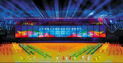 這一夜,全省矚目鳳城歡騰。 這一夜,激情綻放幸福無眠。 四年期待,一朝夢圓。 踏著新征程的鼓點(diǎn),泰州昂首闊步,勇毅走在前列! 這是一場全民的盛會(huì)。當(dāng)泰州四百余本地健身愛好者一齊暖場舞動(dòng),跳出“三水匯聚”“梅杏芬芳”,現(xiàn)場立馬匯成歡樂的海洋。這些表演者平均年齡已超60歲,卻個(gè)個(gè)身強(qiáng)體健,舞姿優(yōu)美。他們中不少人是零基礎(chǔ),為了演出將拼搏進(jìn)取的精神盡情展現(xiàn)。 撂石鎖、泰興花鼓、板凳龍、打蓮湘、抖空竹……一個(gè)個(gè)泰州地方特色濃郁的非遺項(xiàng)目登臺(tái)展演,文體融合訴說泰州千年古韻。 “10、9、8、7……”全場齊數(shù),《天地同泰》倒計(jì)時(shí)十筆寫成一個(gè)“泰”字,開幕式正式開始,熱情瞬間點(diǎn)燃! 旗幟引領(lǐng),步伐整齊,五星紅旗冉冉升起。這抹絢麗的中國紅,令人心潮澎湃,心生自豪。 音樂激昂,會(huì)旗方隊(duì)帶領(lǐng)裁判員方陣、13個(gè)設(shè)區(qū)市方陣及高校、職工方陣意氣風(fēng)發(fā)步入主體育場。本屆省運(yùn)會(huì),全省2萬名選手將進(jìn)行激烈角逐,在107項(xiàng)次比賽中爭金奪銀。運(yùn)動(dòng)員代表欒宇浩、教練員代表張峰、裁判員代表張晉莉分別莊嚴(yán)宣誓:嚴(yán)格遵守競爭規(guī)程、競賽規(guī)則…… 伴隨著江蘇省運(yùn)動(dòng)會(huì)會(huì)旗和江蘇省第二十屆運(yùn)動(dòng)會(huì)會(huì)旗一同升起,省委書記、省人大常委會(huì)主任吳政隆宣布:江蘇省第二十屆運(yùn)動(dòng)會(huì)開幕!泰州市委書記朱立凡也發(fā)出“泰州歡迎你,一起向未來”的誠摯邀請! “鳳儀城,舞霓裳,梅也芬芳蘭也香……”本屆省運(yùn)會(huì)會(huì)歌《泰之戀》拉開了大型文體展演《鳳儀水城 祥泰江海》的序幕。 水韻流芳,匯聚江海之精髓。 泰州,融吳楚越之韻,聚江淮海之風(fēng),三水匯聚,有鳳來儀,雙水繞城,康泰吉祥。在一片藍(lán)色海洋中,全省13市舟楫競發(fā),萬流奔涌最終匯成一幅江蘇地圖。 “我思戀家鄉(xiāng)的煙雨,竹篷船,搖進(jìn)我的夢里……”一首《夢煙雨》,叩動(dòng)滿是鄉(xiāng)愁的心房,麋鹿歡悅、白鷺紛飛中,綿長的水韻絲絲流淌,詩意畫卷漸次鋪陳。 “樂是樂此學(xué),學(xué)是學(xué)此樂。不樂不是學(xué),不學(xué)不是樂……”整個(gè)舞臺(tái)化身《樂學(xué)歌》,泰州明代哲學(xué)家王艮“百姓日用即道”思想再現(xiàn)。古往今來,太多大師先賢,立民本學(xué)說,寫平凡豪杰,懷蒼生憂患,為人民吟唱。施耐庵寫“水滸”、鄭板橋書“水墨”、梅蘭芳舞“水袖”,人文三水,匯聚海納百川的廣博胸懷、家國詩心。 當(dāng)京劇藝術(shù)大師梅蘭芳的影像再現(xiàn)舞臺(tái),他的經(jīng)典京劇藝術(shù)形象跨越時(shí)空,與舞臺(tái)上的演員一同飛舞水袖,紅梅漫天,唯美至極。 勇立潮頭,激蕩民族之氣魄。 鼓聲隆隆,浪潮滔滔,“天下會(huì)船數(shù)溱潼”,中流擊水、萬舟競發(fā)中,江河氣吞萬里! “黃橋燒餅黃又黃……”熟悉的旋律響起,不會(huì)忘記,蘇中平原,黃橋決戰(zhàn)威名遠(yuǎn)揚(yáng)。舞臺(tái)上,一處又一處紅色場館打開,將觀眾帶回那硝煙紛飛的戰(zhàn)火年代:迎風(fēng)戰(zhàn)浪,百萬雄師橫渡長江,揚(yáng)起“東線第一帆”;向海圖強(qiáng),人民海軍從泰州白馬廟駛向浩瀚大海…… 英雄的土地孕育了英雄的兒女,英雄的兒女鑄就了英雄的精神。抗美援朝戰(zhàn)場上,楊根思手捧炸藥包,與敵人同歸于盡。淚光閃爍中,全場高呼“不相信有完不成的任務(wù)!不相信有克服不了的困難!不相信有戰(zhàn)勝不了的敵人!”激情燃至頂點(diǎn)。 走在前列,飛揚(yáng)奮斗之神采。 700多年前,馬可·波羅游歷泰州時(shí)贊嘆:這城不很大,但各種塵世間的幸福極多!一幅城市市井圖,將泰州百姓的煙火氣和幸福生活演繹得淋漓盡致。 場景變換中,充滿科技感的機(jī)械臂、產(chǎn)業(yè)鏈、分子鏈躍動(dòng)眼前,中國醫(yī)藥城大樓被搬上舞臺(tái),一座正在崛起的健康名城熠熠生輝。 “長風(fēng)破浪時(shí),弄潮勇為先。人在三水間,江海向云天。揚(yáng)帆再啟航,奮楫譜新篇……”開幕式主題歌《走在前列》燃動(dòng)唱響。此時(shí),舞臺(tái)幻化成為“江蘇號(hào)”巨輪,鳴笛啟航,駛向未來!體育讓大家凝聚成乘風(fēng)破浪的力量,活力之城,激情揚(yáng)帆。 21時(shí)40分,絢爛焰火騰空而起,整座體育場頓時(shí)化為歡樂的海洋。在焰火的映襯下,開幕式接近尾聲,所有演員從舞臺(tái)四周向場中匯聚,將展演推向高潮。 奮進(jìn)新征程,建功新時(shí)代。泰州將以習(xí)近平新時(shí)代中國特色社會(huì)主義思想為指引,堅(jiān)決擁護(hù)“兩個(gè)確立”,增強(qiáng)“四個(gè)意識(shí)”,堅(jiān)定“四個(gè)自信”,做到“兩個(gè)維護(hù)”,不忘初心,牢記囑托,踔厲奮發(fā),勇毅前行,堅(jiān)決扛起“爭當(dāng)表率、爭做示范、走在前列”光榮使命,為奮力譜寫“強(qiáng)富美高”新江蘇現(xiàn)代化建設(shè)新篇章貢獻(xiàn)力量,以實(shí)際行動(dòng)迎接黨的二十大勝利召開! 當(dāng)晚,從泰州走出去的體育冠軍侯逸凡、周培順等也到場與全場觀眾一同見證這激動(dòng)時(shí)刻! “開幕式演出太精彩了,超出預(yù)期!”中國好人、江蘇最美志愿者段成林受邀觀看
