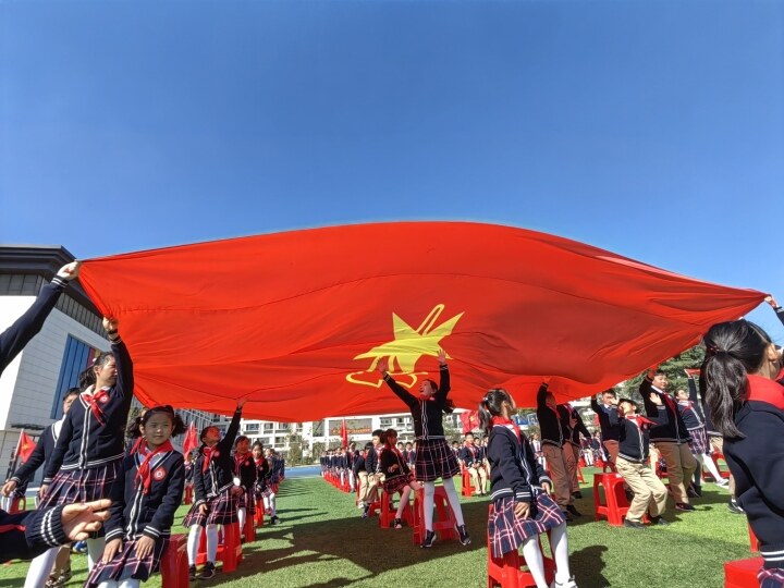 10月13日,江蘇省泰州市城東小學春暉校區,伴隨著節奏鮮明的少先隊出旗曲,三位少先隊小旗手邁著矯健的步伐,拉開了入隊儀式的序幕。 “我是中國少年先鋒隊員,我在隊旗下莊嚴宣誓……”活動現場,在大隊委指揮下,新老隊員們集體向隊旗敬禮,齊聲高唱隊歌《我們是共產主義接班人》,用嘹亮的歌聲表達對少先隊組織的熱愛與向往。隨后,高年級少先隊員代表為新入隊的二年級隊員佩戴紅領巾。新隊員們高舉右拳,面向隊旗,鏗鏘有力的誓言表達了共產主義接班人的信心和決心。 “今天能夠成為光榮的少先隊員,我很開心,也很激動,我希望有更多的小朋友能加入少先隊。”城東小學春暉校區二年級新入隊隊員匡姈悅開心地說,成功加入少先隊,將鼓勵她更好地學習,在學校做一名好學生,在家做一名好孩子。 “四旗傳遞”是黨團隊組織的傳遞,是紅色基因的傳承。在授旗、傳旗環節,黨旗、國旗、團旗、隊旗四面旗幟迎風招展,并由四位傳旗代表鄭重地授予少先隊員代表。隨后,當護旗手邁著鏗鏘有力的步伐,高舉著黨旗、國旗、團旗、隊旗,從每一位同學頭頂滑過,鮮紅的旗幟映紅了孩子們的臉,也更加激發了每一個孩子的愛國心,整片操場滿是耀眼的中國紅。 “隊員們近距離地觸摸旗幟,感受紅色精神,完成了黨、團、隊組織一脈相承的有形化教育,為少年兒童‘系好人生第一粒扣子’奠定了堅實的思想基礎。本次活動旨在引導廣大少先隊員傳承紅色基因,凝聚奮斗朝氣,爭做新時代聽黨話、感黨恩、跟黨走的好少年。”泰州市少工委相關負責人說。據悉,活動期間,泰州市3萬多名新隊員光榮加入了少先隊這個大家庭。