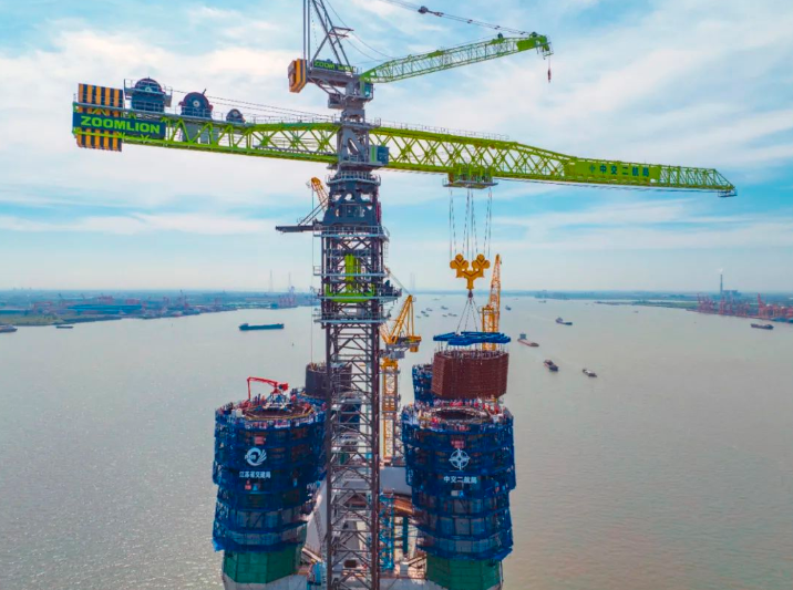 建設“兩縱四橫”高速公路網 通車里程已達320公里 常泰長江大橋北接線工程是泰州目前在建的四條高速公路之一。工程四標段為高架橋梁線路,總長約5.76公里,是大橋北接線關鍵控制性工程。目前,680多名工人正在搶抓有利天氣,采用六臺架橋機分三個工作面同時開展節段箱梁架設施工,已累計完成27跨,占總量250跨的10.8%。