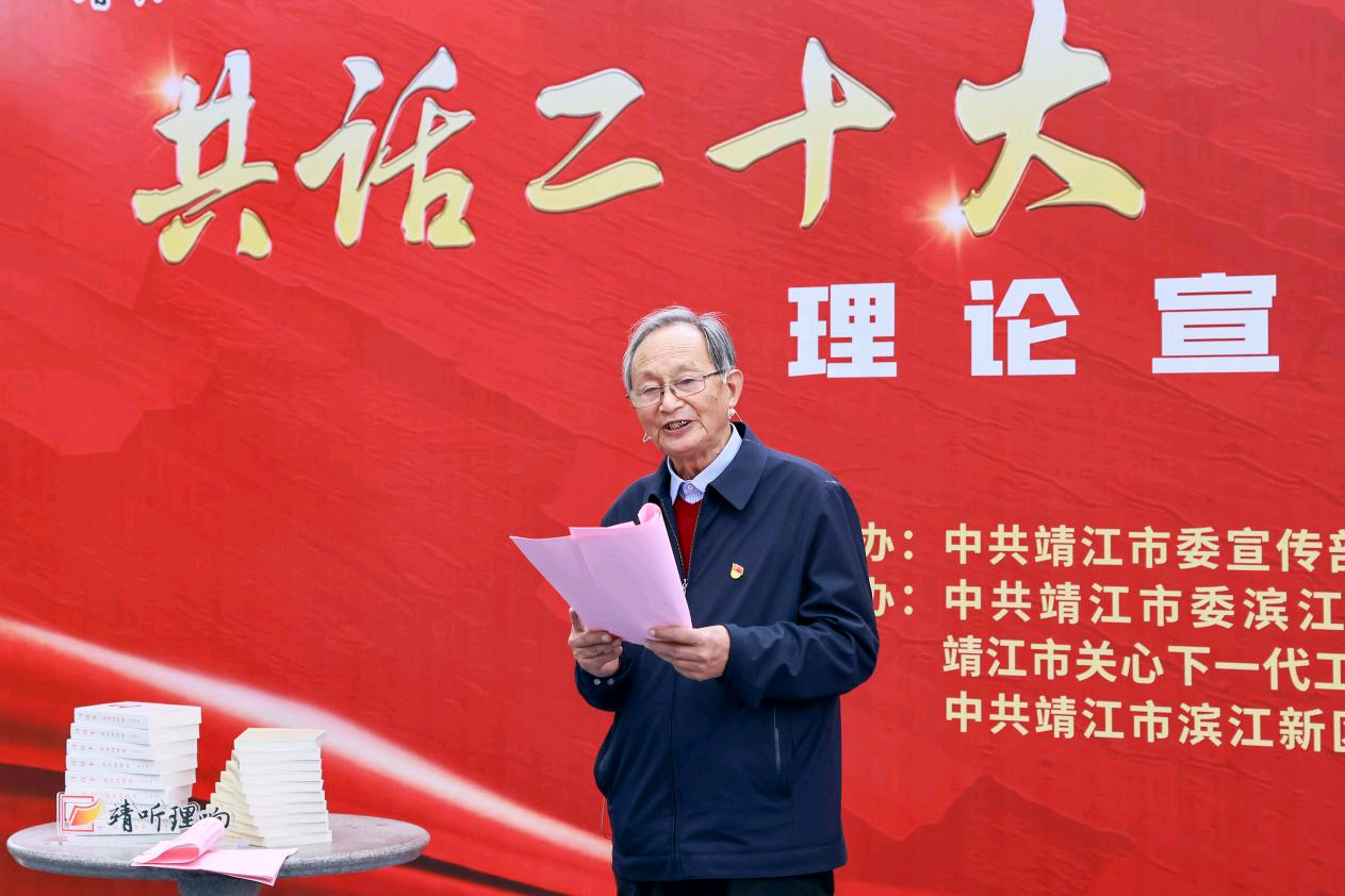 ▲香樟樹下的宣講活動現(xiàn)場 “中國式現(xiàn)代化為人類實現(xiàn)現(xiàn)代化提供了新的選擇,中國共產(chǎn)黨和中國人民為解決人類面臨的共同問題提供更多更好的中國智慧、中國方案、中國力量……”10月31日下午,江蘇省靖江市濱江新區(qū)辦事處江陽社區(qū)“理響”驛站不時傳出陣陣掌聲,居民們聚集一堂,共同聆聽“銀發(fā)先鋒”宣講員陳克任分享黨的二十大報告“金句”。 ▲陳克任分享黨的二十大報告“金句” 這是靖江市“‘理響’江之陽——共話二十大,逐夢向未來”理論宣講的一個場景。成排的香樟樹下,一張圓桌,幾方石凳,平日里社區(qū)居民閑暇談心的好去處成為理論宣講“課堂”。今年90歲的陳克任銀發(fā)丹心,將自己摘錄整理的黨的二十大報告“金句”誦讀得字字鏗鏘,令人振奮。“靖聽理響”宣講團成員夏嘯,為大家講述了靖江捕魚者向護漁人轉(zhuǎn)變的故事,展示了新思想在靖江的生動實踐。 此次宣講活動,是靖江市“六講六學”黨的二十大精神系列活動的一項內(nèi)容,分“領學·新思想”“見證·新發(fā)展”“暢敘·新生活”“共話·新愿景”四個篇章進行。 今年85歲的“銀發(fā)先鋒”宣講員郭建崗,以《美好生活的幸福密碼》為題,從生態(tài)環(huán)境、醫(yī)療、教育、就業(yè)等多個方面,歷數(shù)靖江濱江新城的十年變遷和百姓生活的提升改善。豐富詳實的數(shù)據(jù)、身邊人物的故事,引得社區(qū)居民連連點頭。“郭老講得特別實在,我們都是新城變化的見證者,現(xiàn)在我們的生活幸福感滿滿,多虧了黨的好政策。”社區(qū)居民呂英說。 ▲郭建崗宣講《美好生活的幸福密碼》 宣講活動中,還穿插歌曲獨唱《領航新時代》、朗誦《十年,新城如畫》、快板說唱《砥礪奮進新征程》等節(jié)目,把宣講內(nèi)容轉(zhuǎn)化成文藝作品,讓社區(qū)群眾感受家鄉(xiāng)日新月異的變化。 在“你問我答”環(huán)節(jié),通過開展黨的二十大知識問答,活躍了現(xiàn)場氛圍。在“你惑我解”環(huán)節(jié),社區(qū)居民圍繞環(huán)境衛(wèi)生改善、小區(qū)加裝電梯、老舊設施維修等話題,與社區(qū)黨委書記劉旭明暢聊,在期許美好新生活的同時,也為社區(qū)建設出謀劃策。 黨的二十大召開以來,江蘇省靖江市迅速掀起學習宣傳貫徹黨的二十大精神熱潮,還專門組建“銀發(fā)先鋒”宣講隊,使之成為宣傳黨的創(chuàng)新理論的重要力量。“銀發(fā)先鋒”宣講員們將生活故事、城市變遷融入宣講內(nèi)容,走進社區(qū)睦鄰點、百姓廣場、文體活動室,用講故事、拉家常的方式,“沉浸式”宣講傳播黨的創(chuàng)新理論、方針政策,將精神“大餐”送到社區(qū)居民身邊。