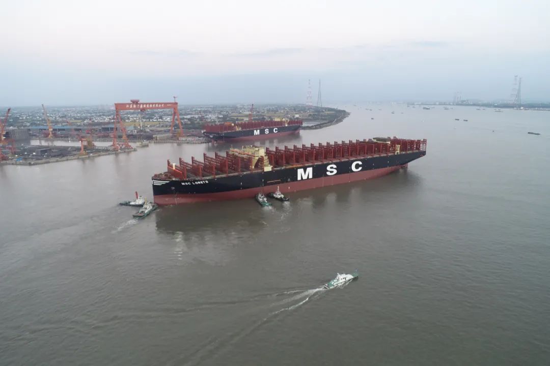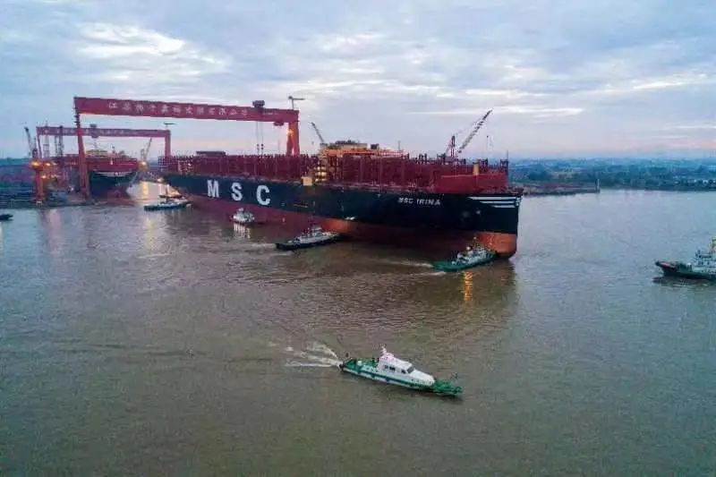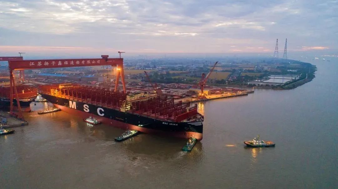 這是迄今為止 全球建造的 最大裝箱量集裝箱船 也是泰州 在全球頂級超大型集裝箱船建造領域 創下的一項新紀錄