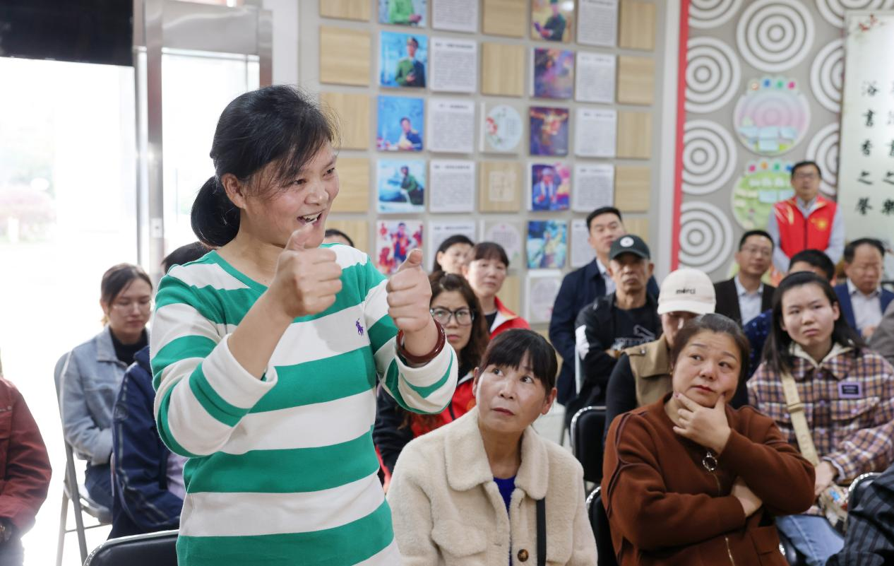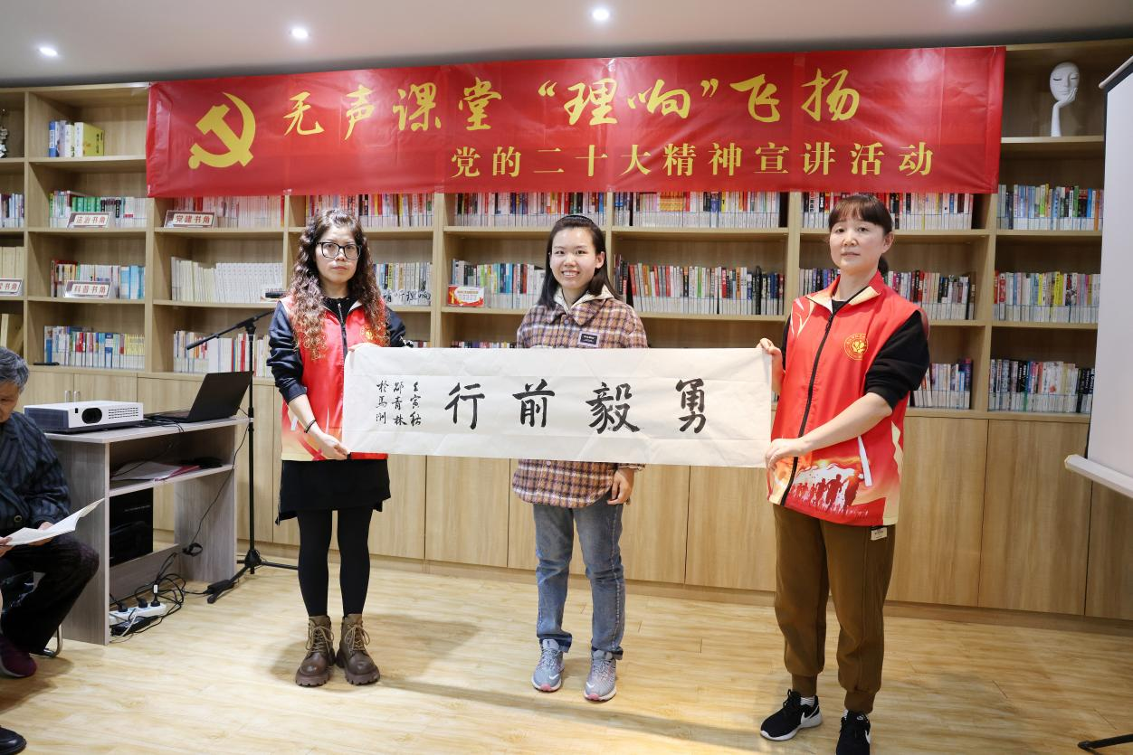 11月2日下午,江蘇省靖江市濱江新區(qū)辦事處康陽社區(qū)的馨港灣內(nèi)氛圍熱烈,20余名聽障人士圍坐一堂,“聆聽”黨的二十大精神宣講。新時代十年黨和國家事業(yè)取得的非凡成就,通過黨員志愿者唐婷婷的手語表達,傳達給這些特殊“聽眾”,這場特殊“宣講”在聾啞人心中飛揚起“理響”之聲。 ▲宣講現(xiàn)場 唐婷婷首先分享了黨的二十大報告中有關(guān)“完善殘疾人社會保障制度和關(guān)愛服務(wù)體系,促進殘疾人事業(yè)全面發(fā)展”等內(nèi)容。與大家切身相關(guān)的報告內(nèi)容,讓聾啞“聽眾”眼神交匯,紛紛伸出大拇指點贊。 大家的目光緊緊跟隨著唐婷婷的雙手,一旁的投影屏幕上配合著宣講內(nèi)容不時切換畫面,一項項重點工程、一個個國之重器、一次次創(chuàng)新突破……宣講所展示的輝煌成就,讓大家“聽”得津津有味。 ▲分享感悟 宣講結(jié)束,幾名聾啞人熱情地拉住唐婷婷,迫不及待分享他們心中的感受。聾啞人王玲用手語激動地“說”:如今生活越來越好,黨和政府對殘疾人的生活也十分關(guān)心。患有聽力障礙的丈夫今年還成功考取機動車駕駛證,相關(guān)部門不但幫忙跑腿辦理相關(guān)手續(xù),還減免了部分學(xué)費,這些都得益于黨的好政策。文藝工作者邵波表示,在靖江市,不少殘疾文藝工作者還有了自己的工作室,可以潛心創(chuàng)作。今后他將始終聽黨話、跟黨走,努力創(chuàng)作更多有情懷的好作品。 ▲書法展示 交流間,大家的興致越來越高。書法愛好者邵青林現(xiàn)場揮毫,創(chuàng)作“勇毅前行”書法作品,以筆墨表達奮進新征程的豪情。大家還集體用手語表達“祝愿我們的黨越來越強大,祝愿我們的祖國越來越輝煌”。志愿者帶來的黨的二十大報告單行本也十分搶手,大家爭相領(lǐng)取,并饒有興致地翻閱起來。 “希望這次特殊的‘宣講’,能讓聾啞人和我們一樣感受到震撼、激勵和鼓舞。”唐婷婷說,為做好這次宣講,她認真閱讀了黨的二十大報告原文,并對照央視直播鏡頭中的手語,力求表達精準。 黨的二十大勝利召開后,靖江市第一時間組織市委宣講團、百姓名嘴、銀發(fā)先鋒、青年講師團、思政名師、企業(yè)紅領(lǐng)6支宣講隊伍,深入一線,分層分眾開展宣講活動。還針對聾啞人、盲人等特殊群體,該市組織特殊教育工作者、手語老師等專業(yè)人士精心備課,開展主題宣講,把黨的二十大精神送到群眾身邊。